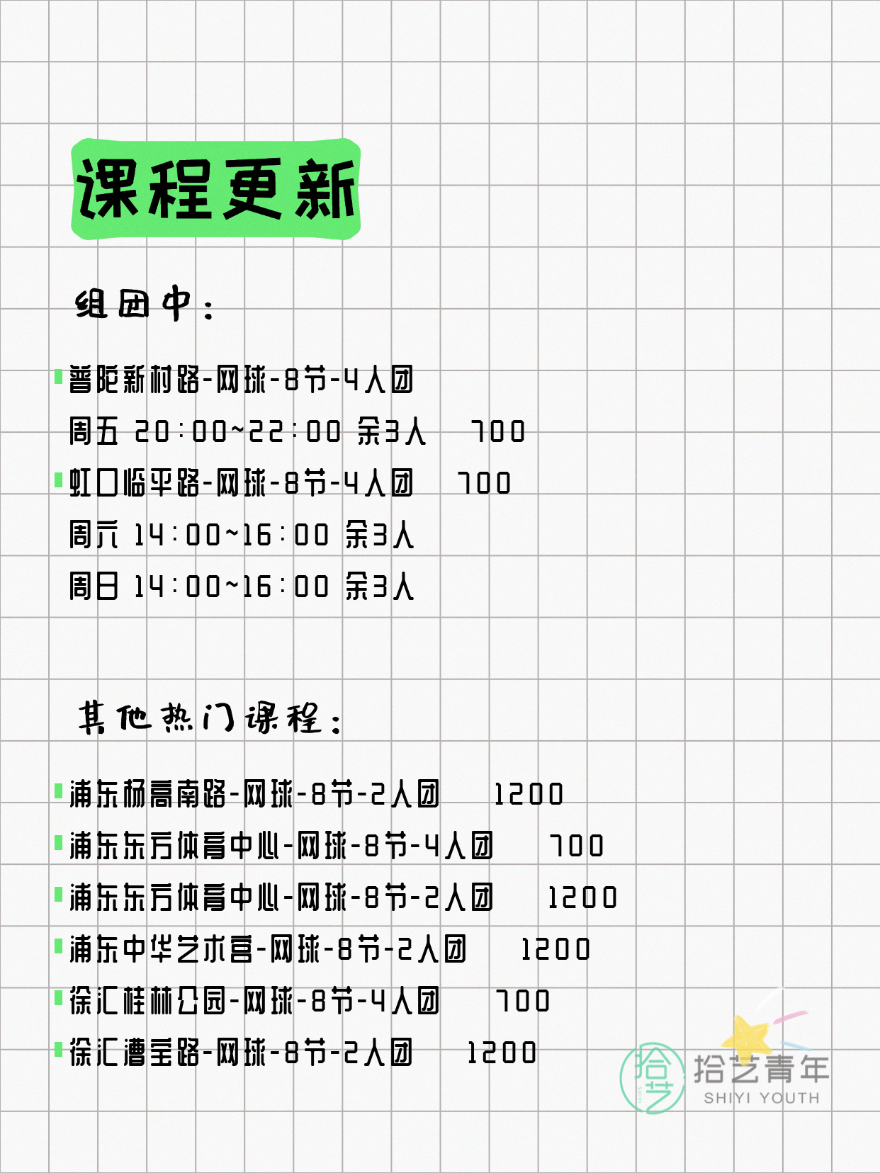 🔥 网球-普陀新村路-8节-4人团 💰700