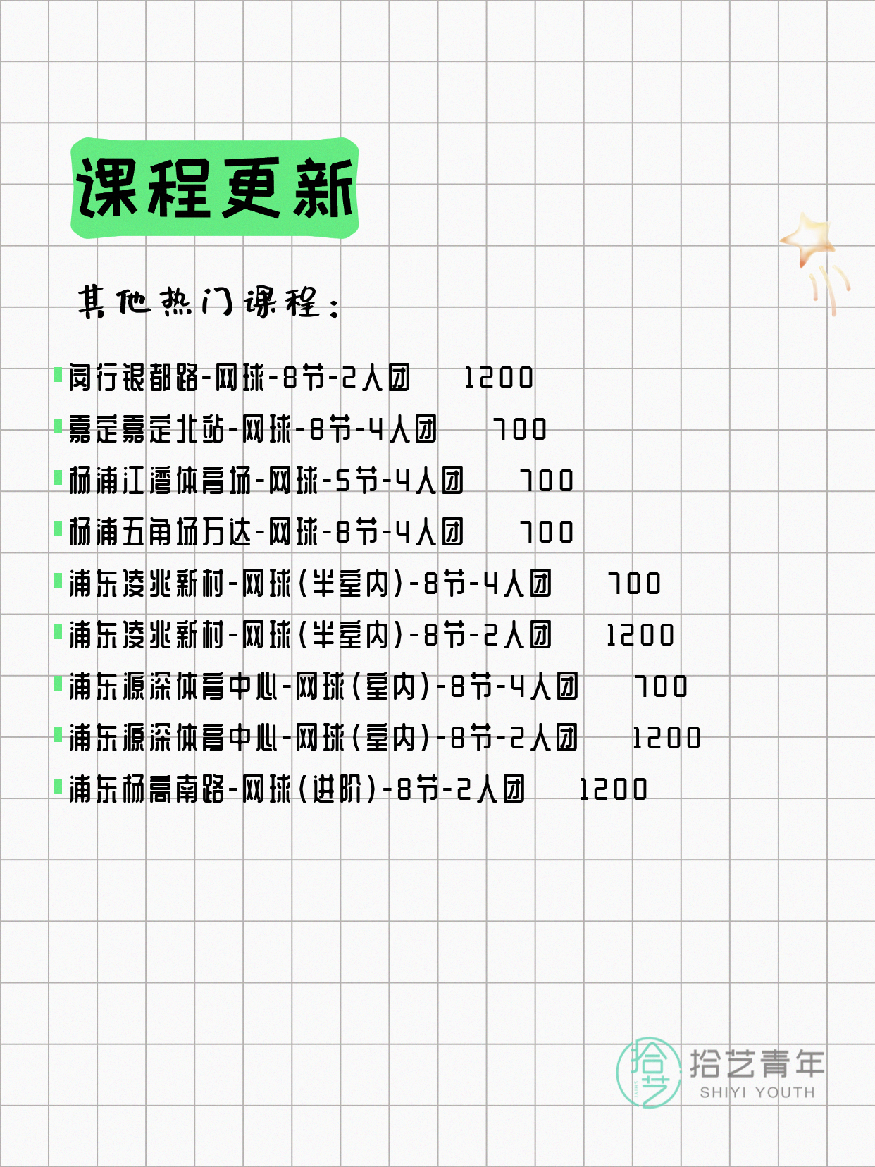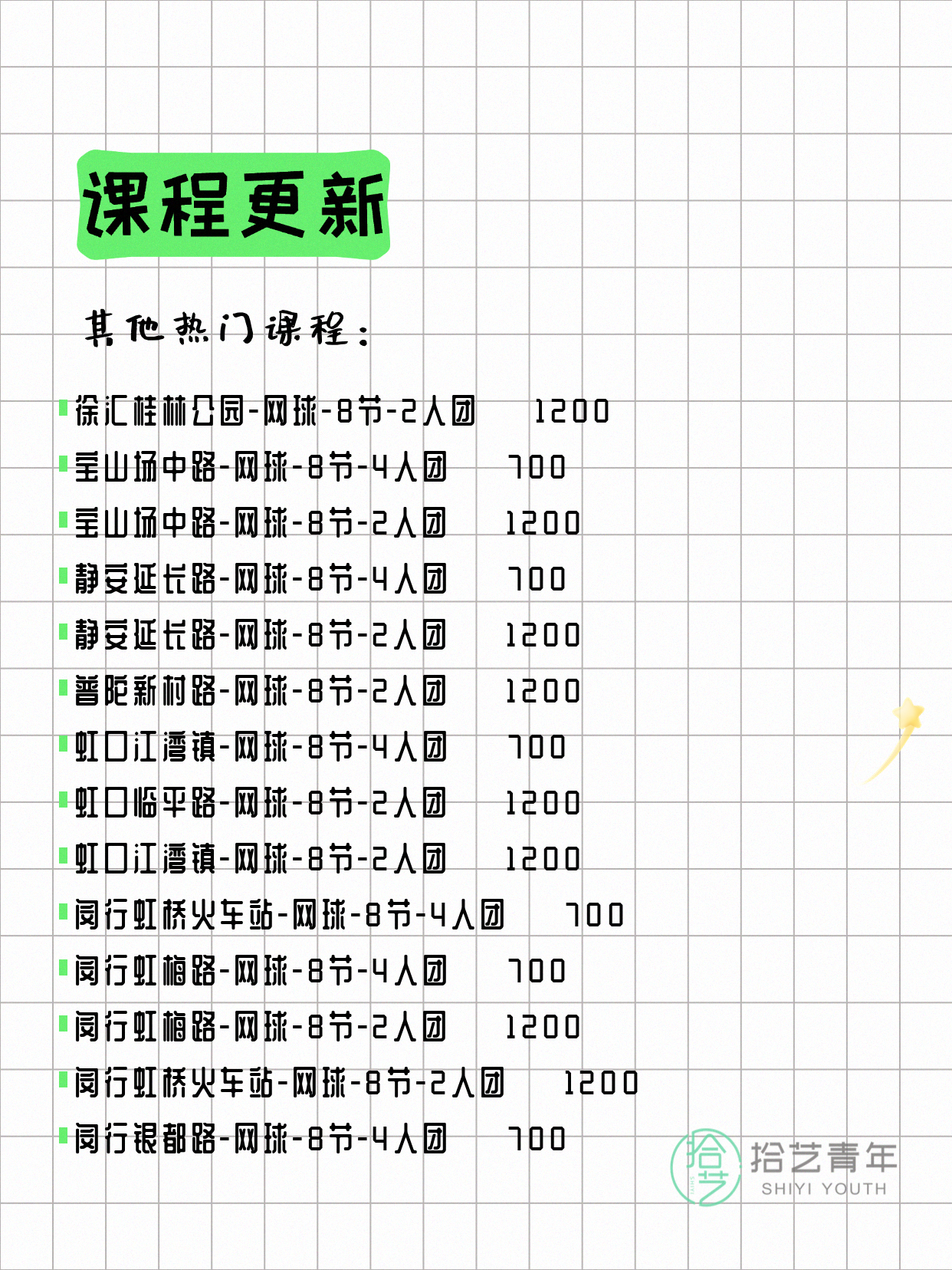 ⭐ 网球-静安延长路-8节-4人团 💰700