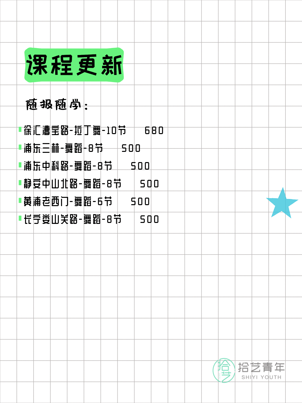 💡 提示:以上课程信息来自拾艺青年小程序,课程可能随报名动态变化,具体以小程序实时信息为准。