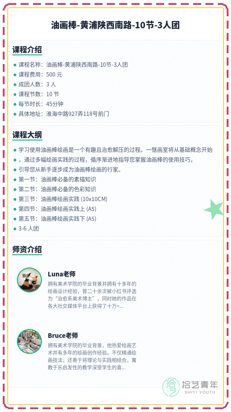 #上海夜校 #黄浦夜校 #油画棒课程 #夜校拼团 #上海线下课