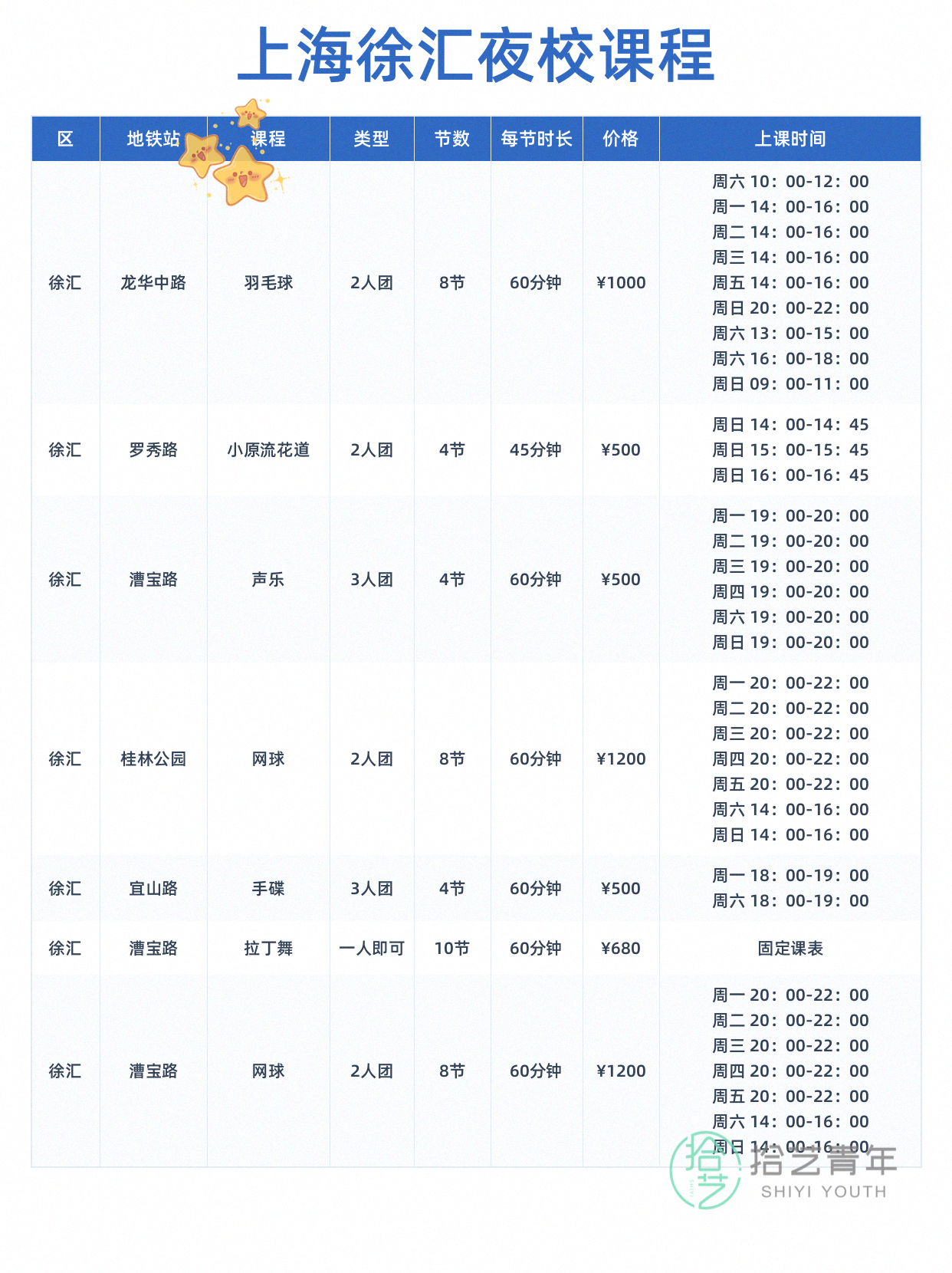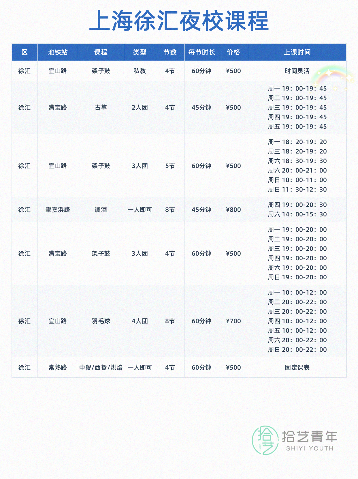 资讯>综合>正文徐汇夜校好香啊拾艺青年2026-04-121 / 4同事转的徐汇夜校课表!🧘瑜伽 🥁架子鼓 📌拉丁舞下班走过去就到超方便先截图存着了相关标签##上海夜校##徐汇##打工人日常##瑜伽爱好者##下班后的生活