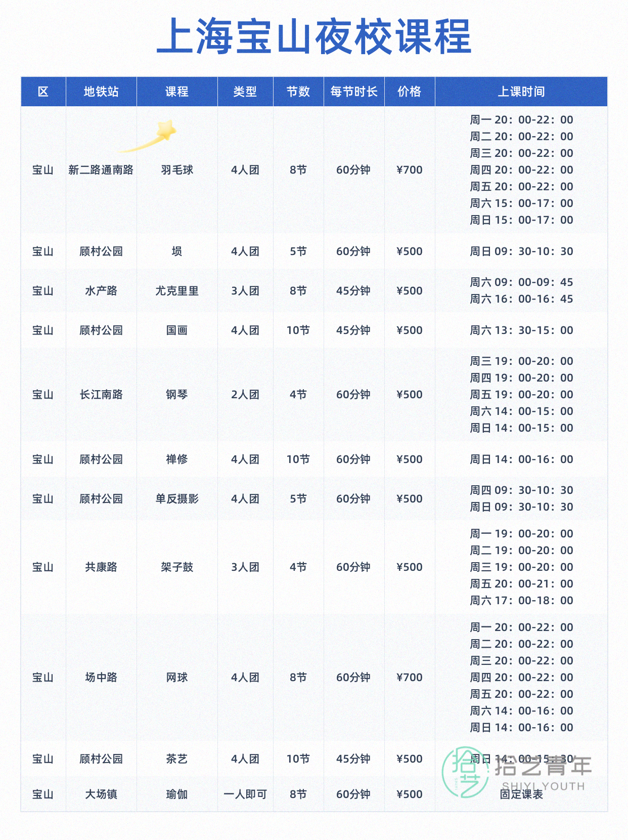 资讯>综合>正文终于等到宝山夜课拾艺青年2026-04-131 / 4同事转的!下班地铁直达🧘瑜伽 🎹钢琴 📌单反摄影先存图,别等找不到啦相关标签##上海夜校##宝山##打工人充电##下班后生活##兴趣培养