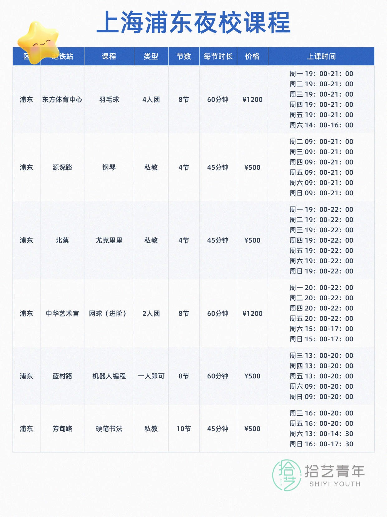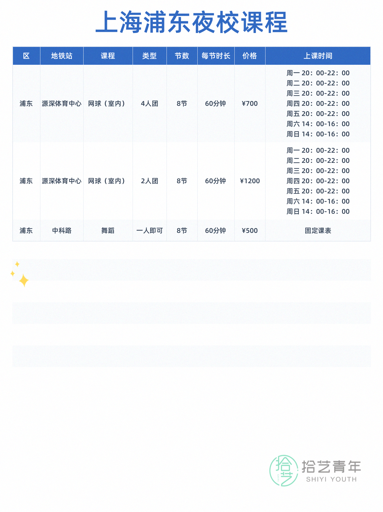 资讯>综合>正文谁还不知浦东夜校?拾艺青年2026-04-111 / 7下班地铁直达,超近!🧘瑜伽 📌贝斯 📌茶艺 🎾网球感兴趣先截图存着。相关标签##上海夜校##浦东##打工人日常##下班后的生活##上海生活