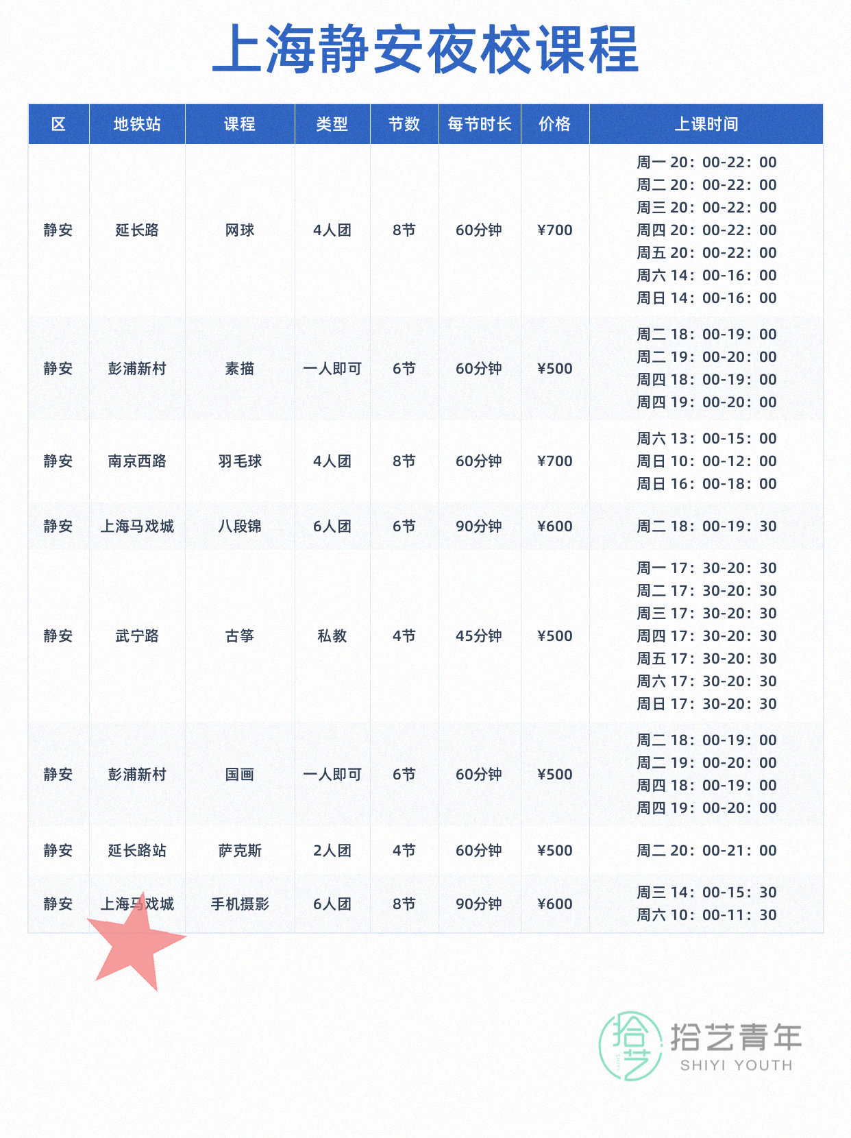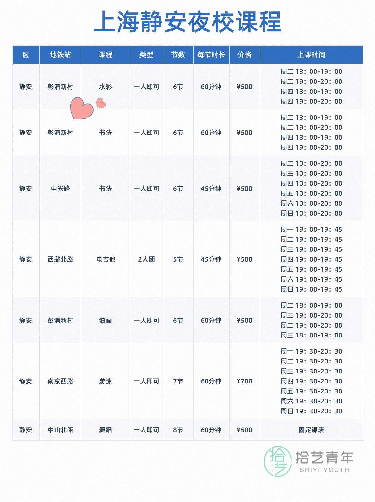 资讯>综合>正文家人们静安夜校速看拾艺青年2026-04-081 / 3同事刚转的静安夜校课表!📌八段锦 🏸羽毛球 💄化妆下班地铁直达超方便,先存图啦。相关标签##上海夜校##静安##打工人日常##下班后的日常##上海生活
