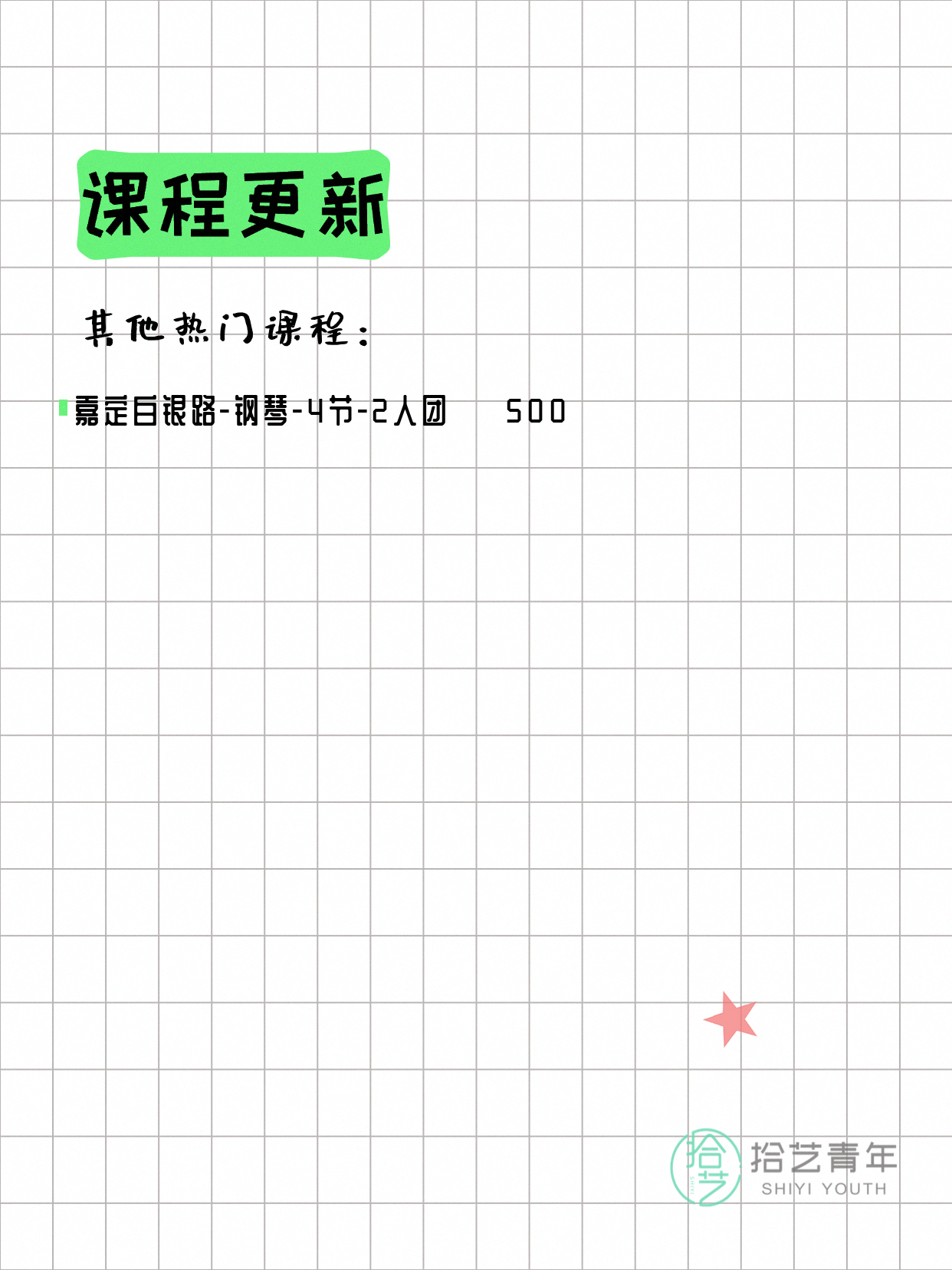 💡 提示:以上课程信息来自拾艺青年小程序,课程可能随报名动态变化,具体以小程序实时信息为准。