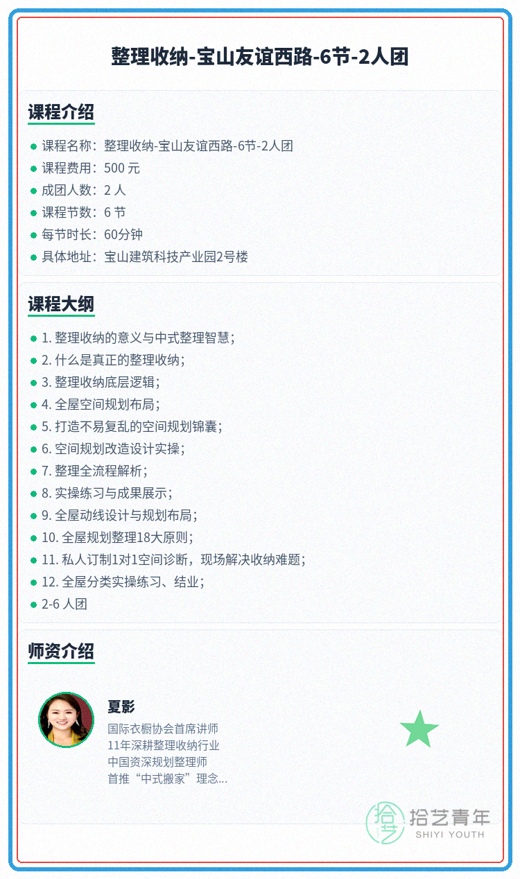#上海夜校 #宝山夜校 #整理收纳课程 #夜校拼团 #上海线下课