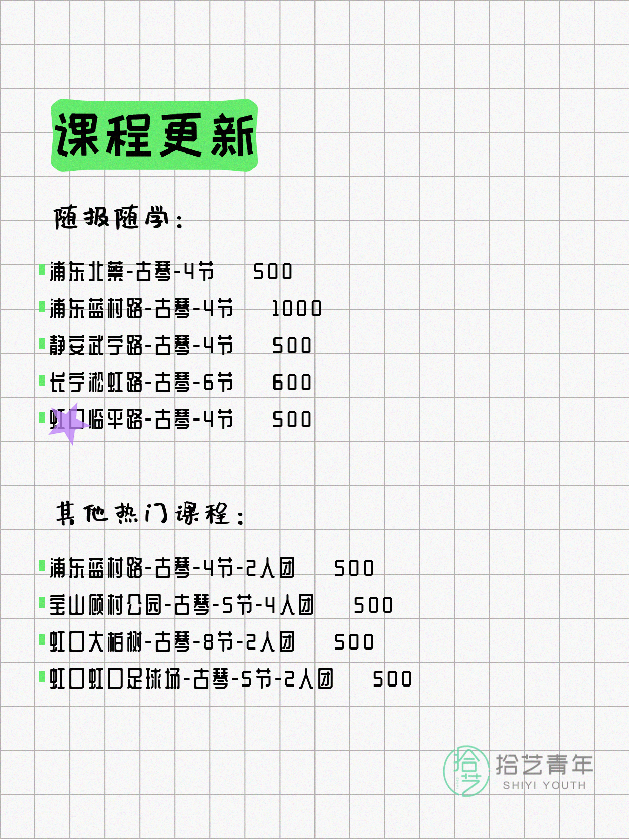 ⭐ 古琴-浦东蓝村路-4节-2人团 💰500