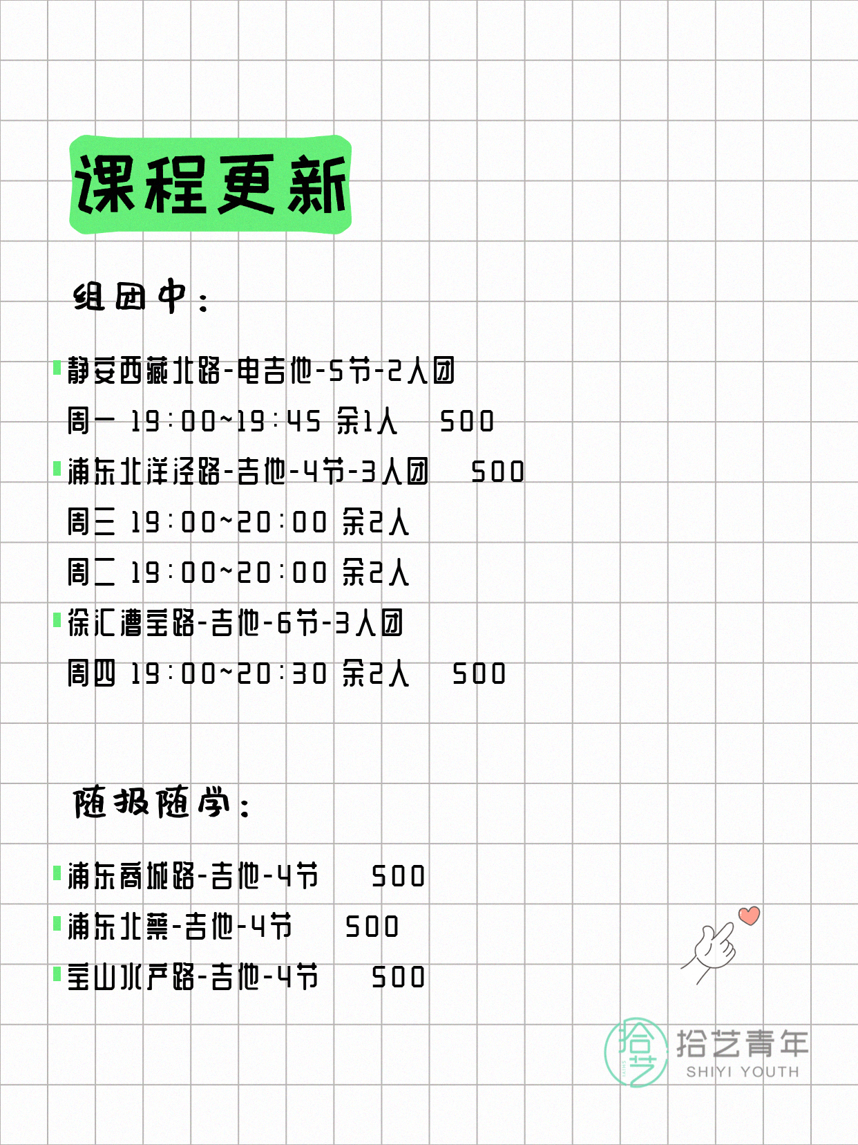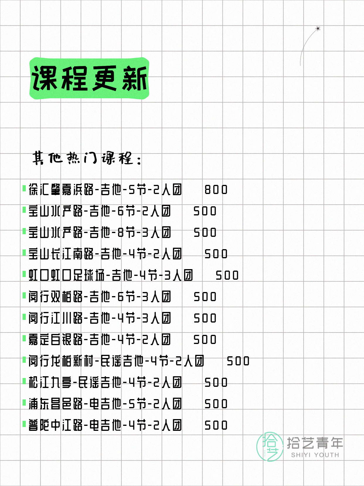 🔥 吉他-浦东北洋泾路-4节-3人团 💰500