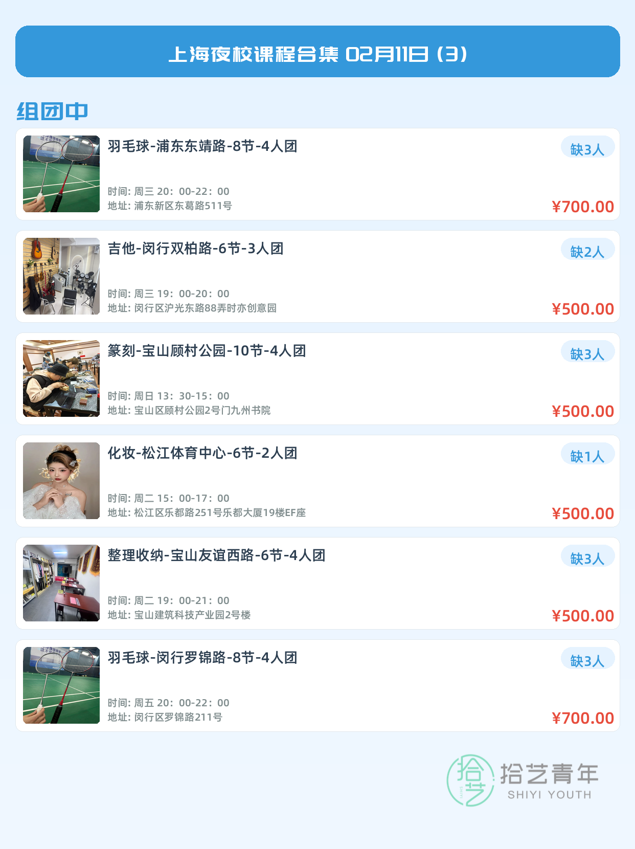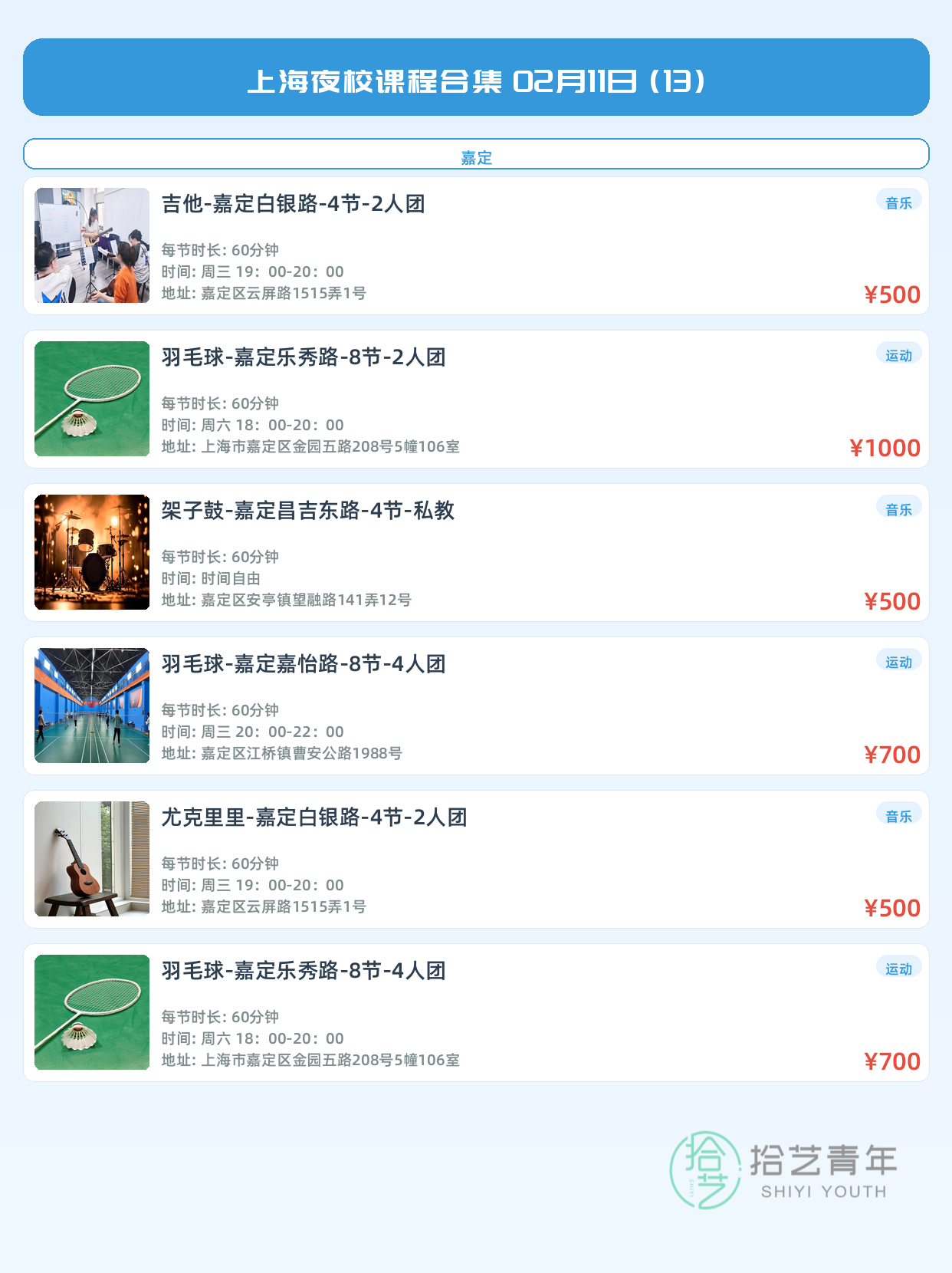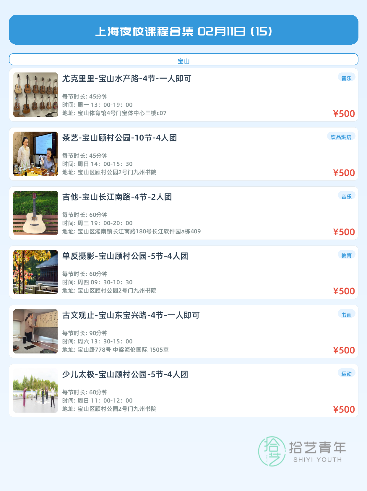 直到发现拾艺青年的夜校,上海各个热门区域都有课,好多都是地铁直达,下班顺路就能去,不用特意绕路省了超多通勤时间!选了家附近闵行双柏路的吉他团课,500元6节,和同小区的姐妹一起报了名。