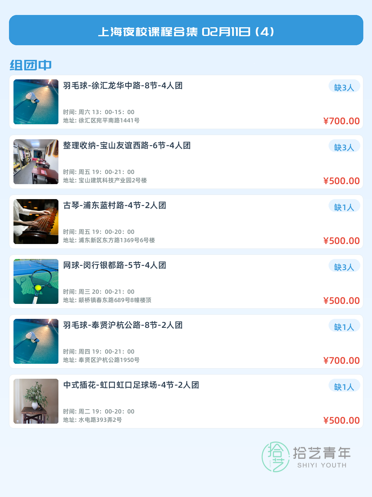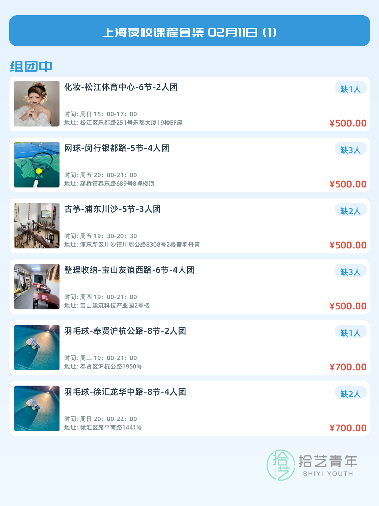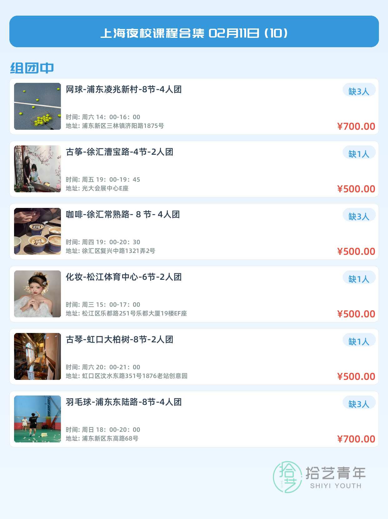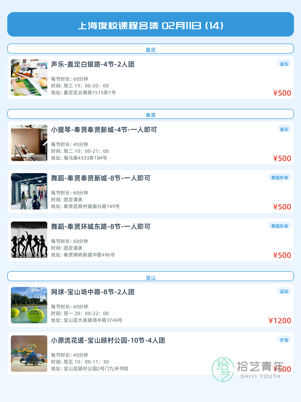 直到发现拾艺青年的夜校,上海各个热门区域都有课,好多都是地铁直达,下班顺路就能去,不用特意绕路省了超多通勤时间!选了家附近闵行双柏路的吉他团课,500元6节,和同小区的姐妹一起报了名。