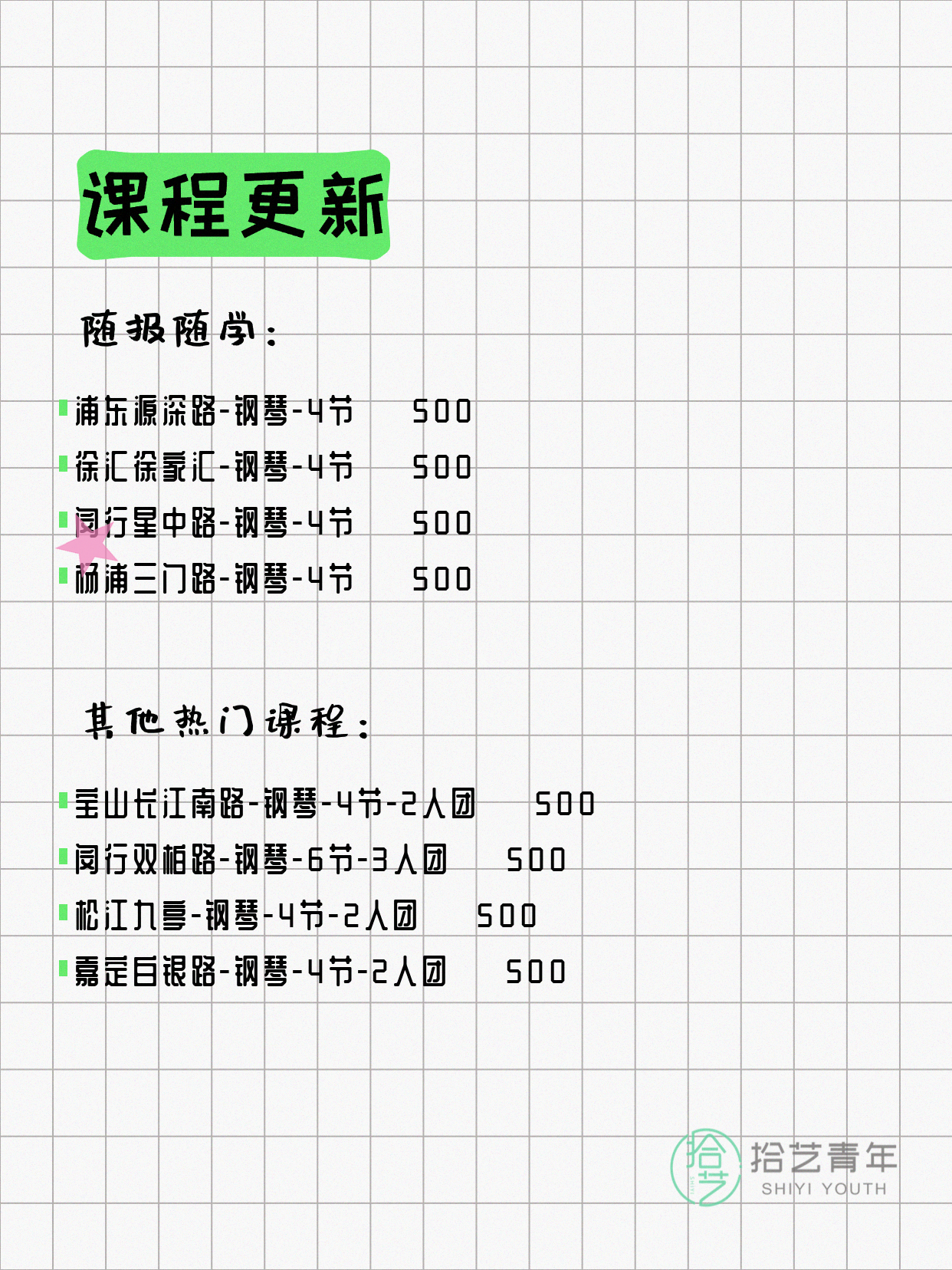 ⭐ 钢琴-松江九亭-4节-2人团 💰500