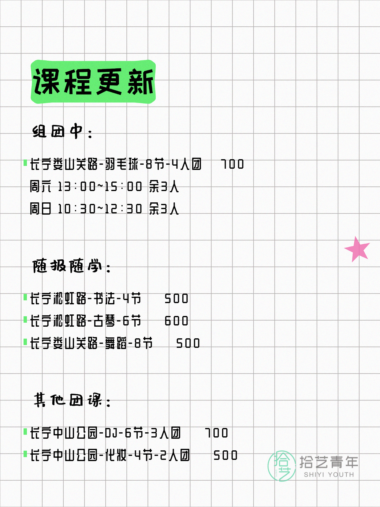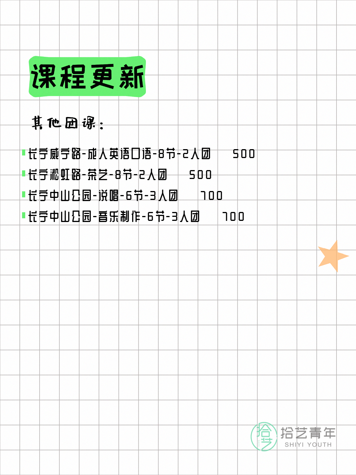 4月9日上海长宁课表更新啦~
