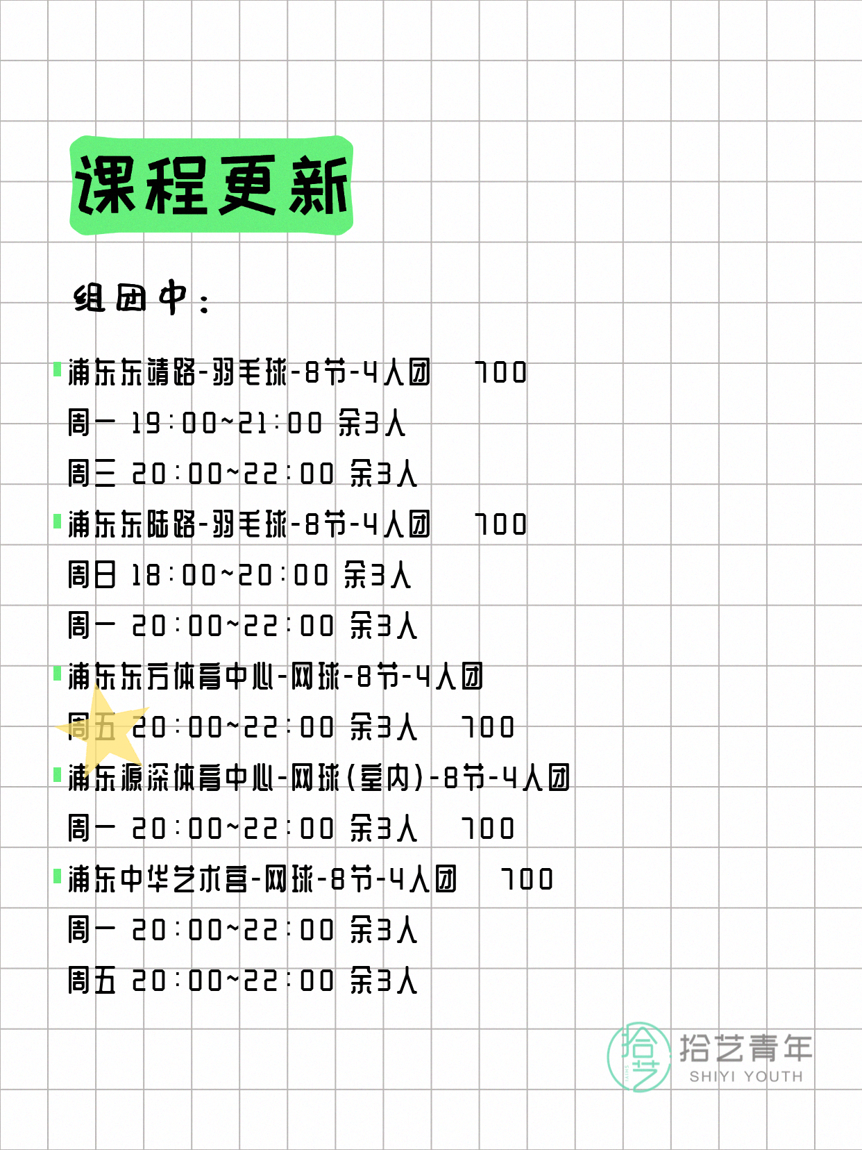 🔥 羽毛球-浦东高科西路-8节-4人团 💰700