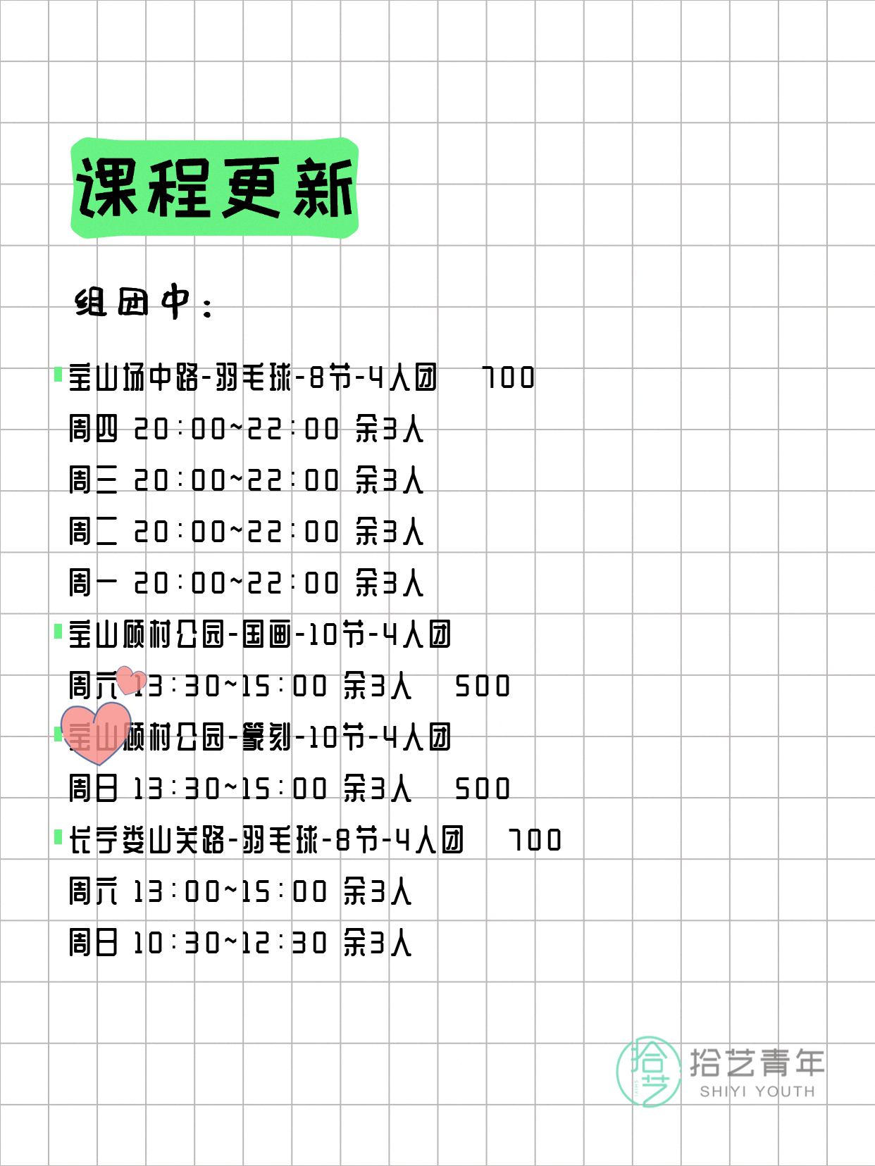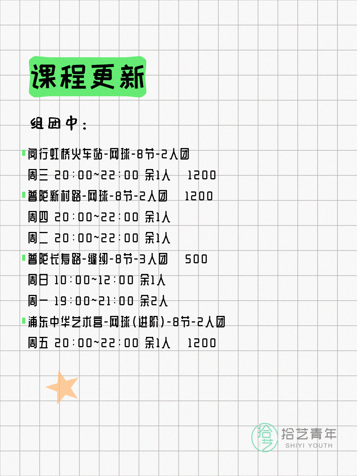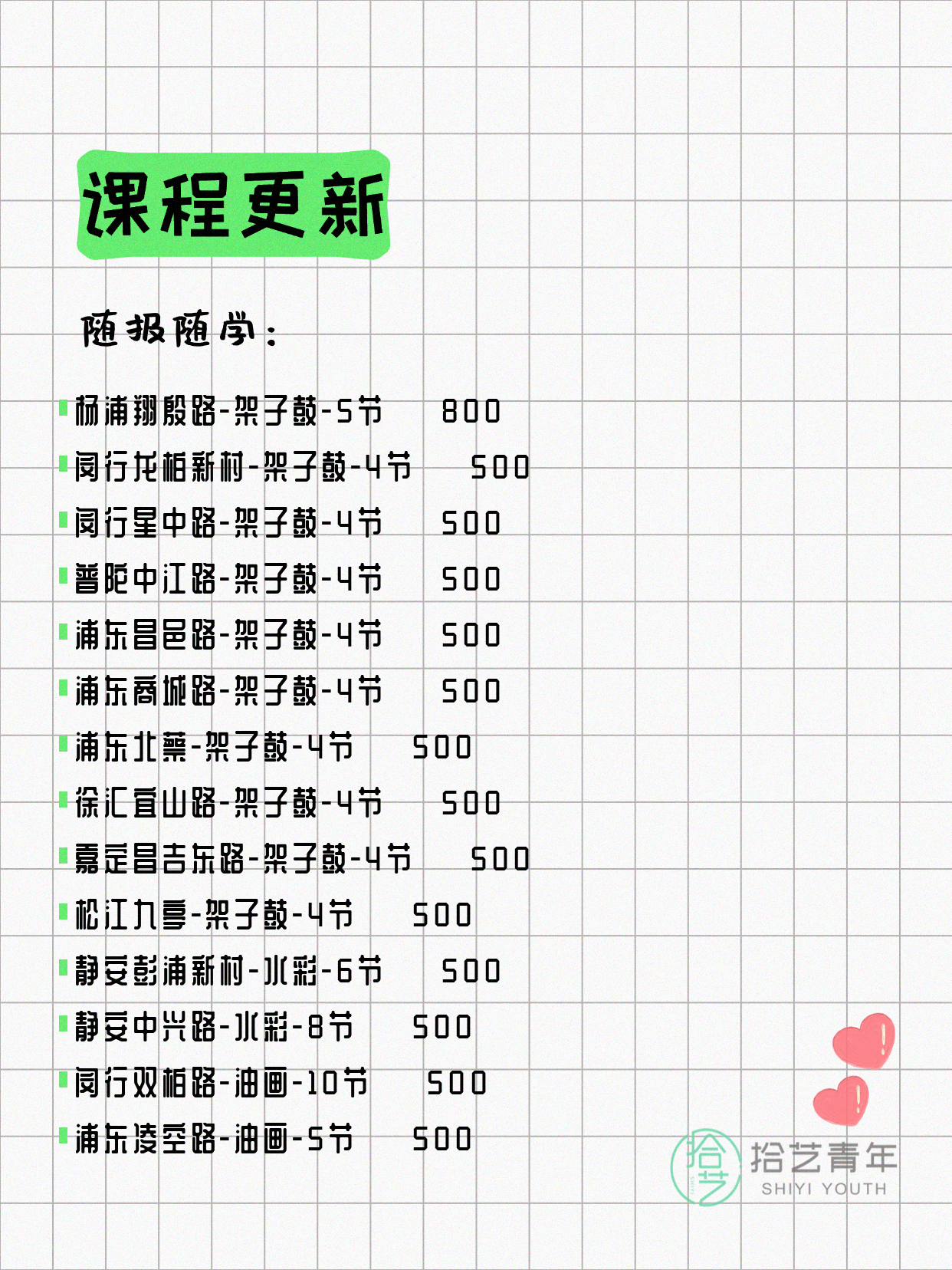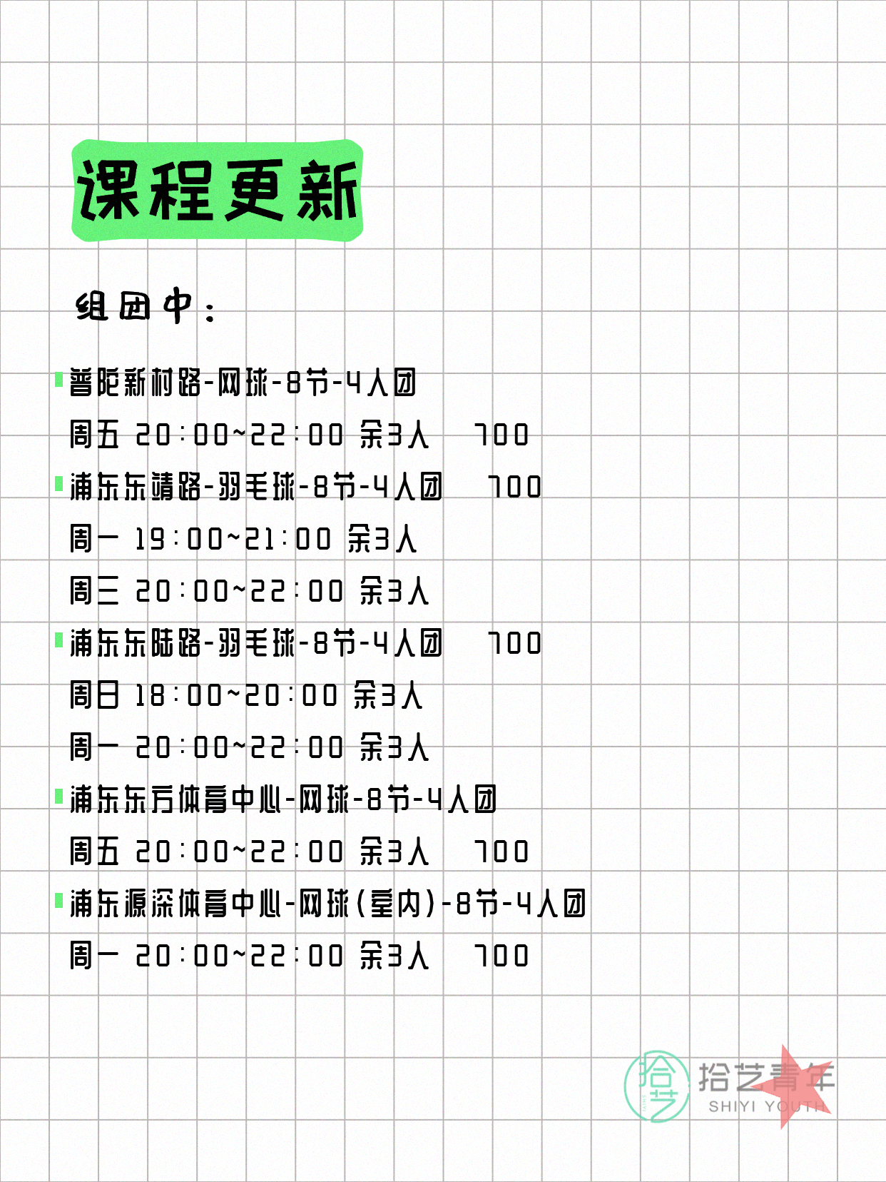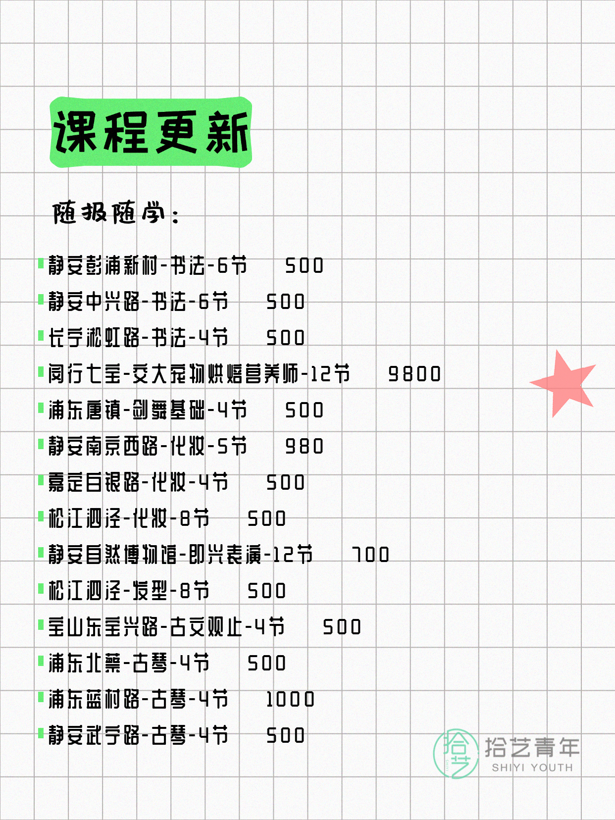 资讯>综合>正文4月9日上海夜校课程合集拾艺青年2026-04-091 / 17📊 本期课程概况• 总课程数:377门• 组团中课程:73门• 覆盖区域:15个区详见图片,欢迎报名咨询。💡 提示:以上课程信息来自拾艺青年小程序,课程可能随报名动态变化,具体以小程序实时信息为准。👉 微信小程序链接:#小程序://拾艺青年/WmfwH22mnQUxZwb