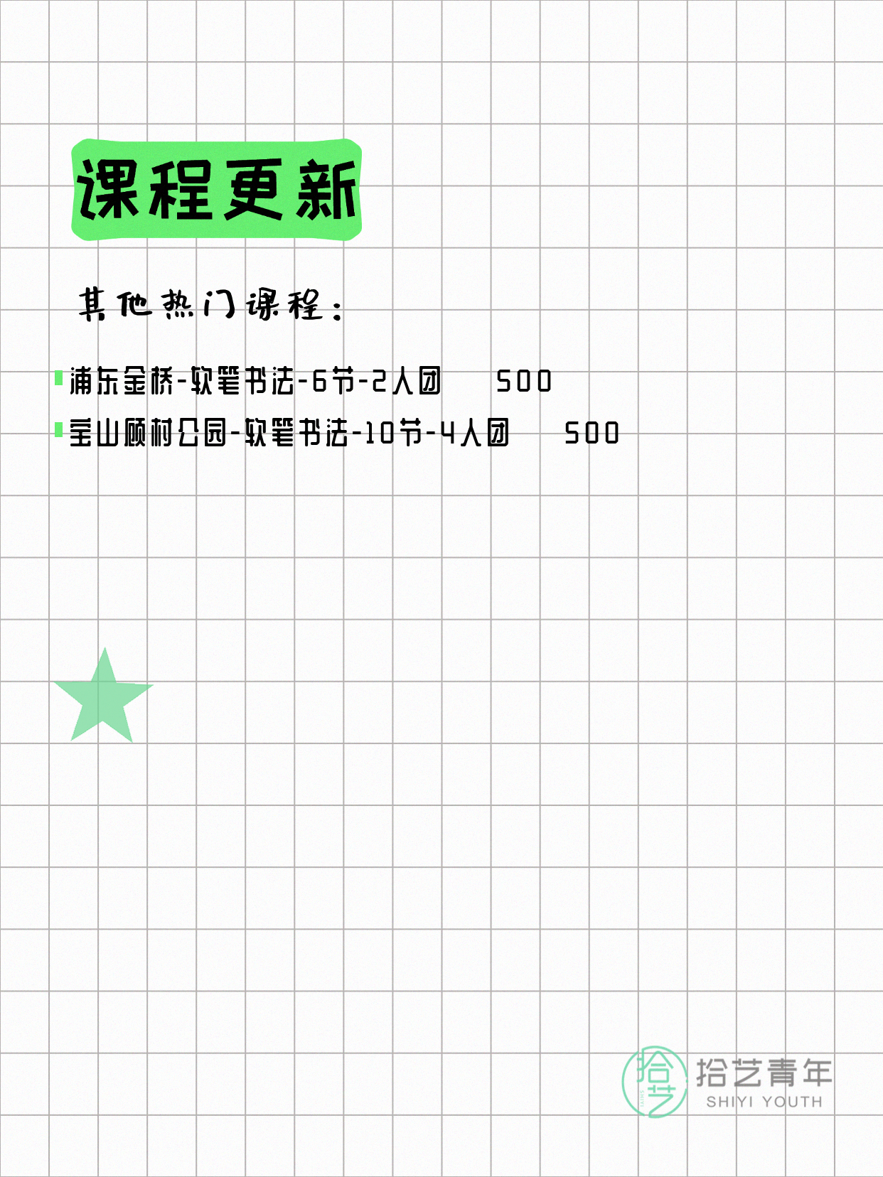 ⭐ 软笔书法-宝山顾村公园-10节-4人团 💰500