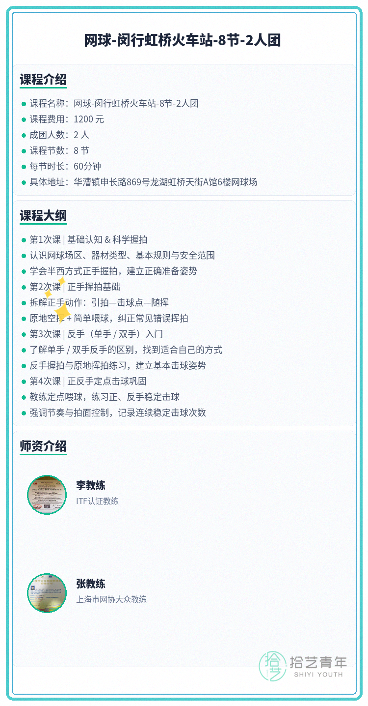 虹桥火车站旁的网球课就差最后1个坑位啦🎾