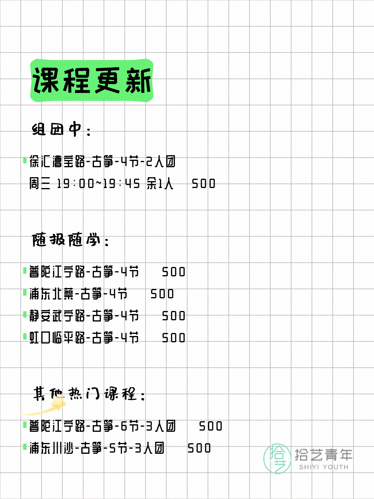 ⭐ 古筝-浦东川沙-5节-3人团 💰500