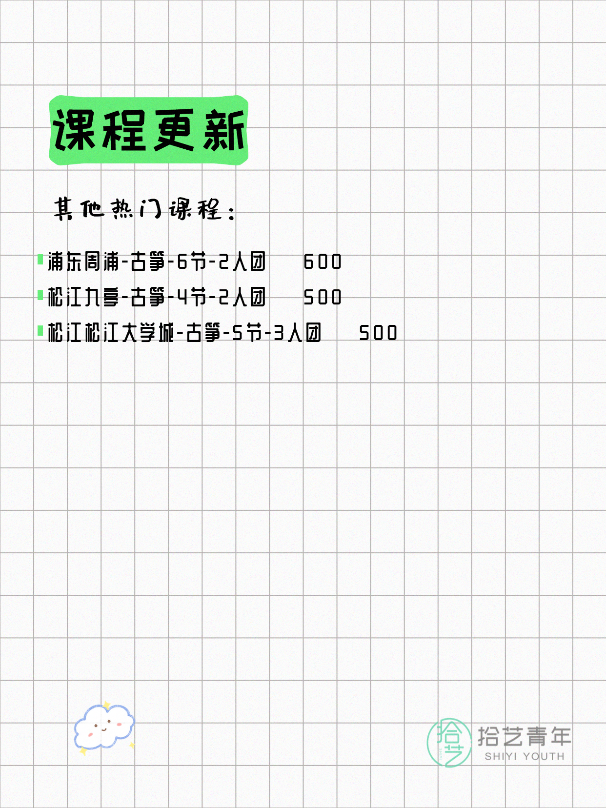 ⭐ 古筝-松江松江大学城-5节-3人团 💰500