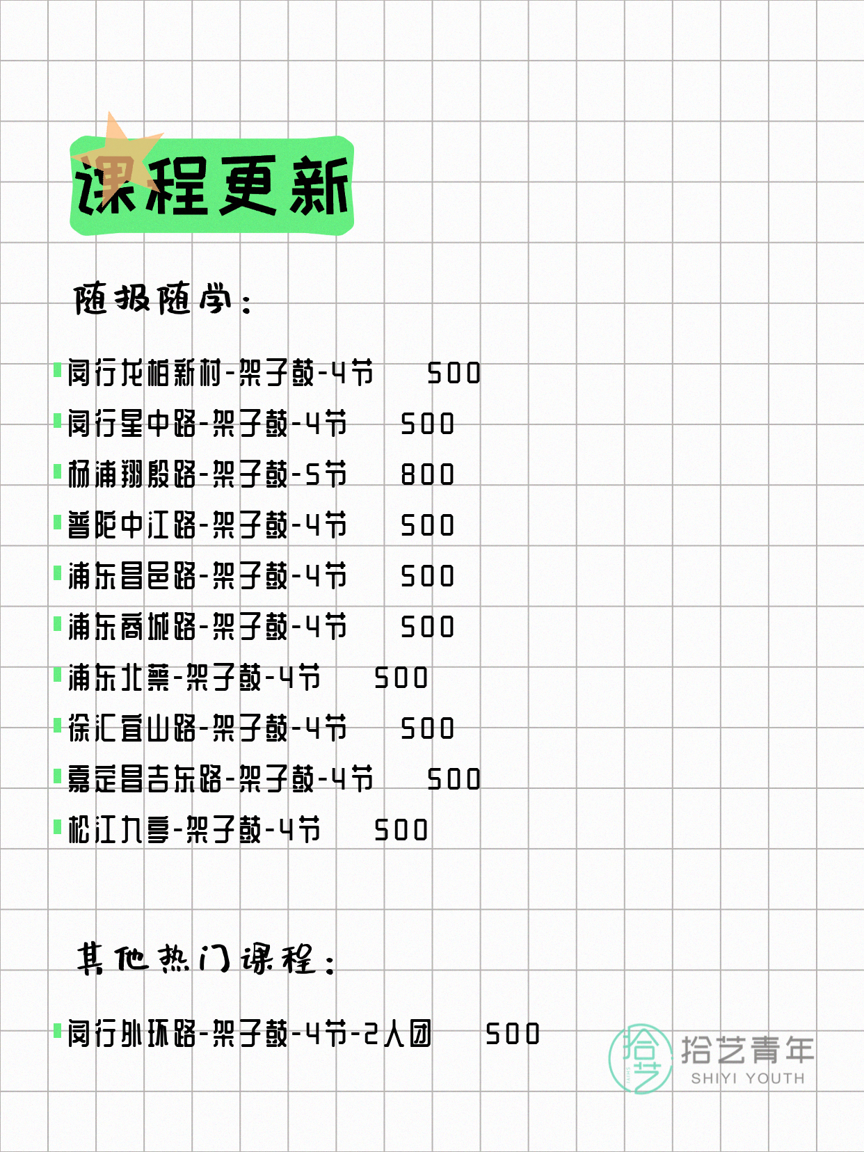 ⭐ 架子鼓-杨浦翔殷路-4节-3人团 💰500