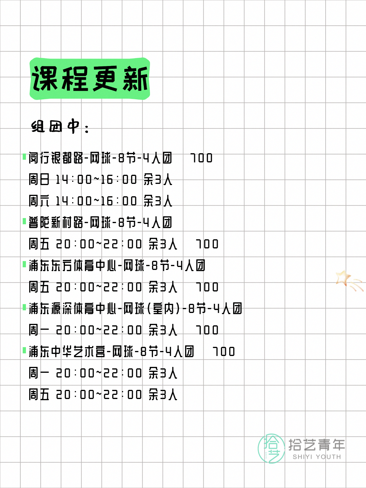 🔥 网球-普陀新村路-8节-4人团 💰700