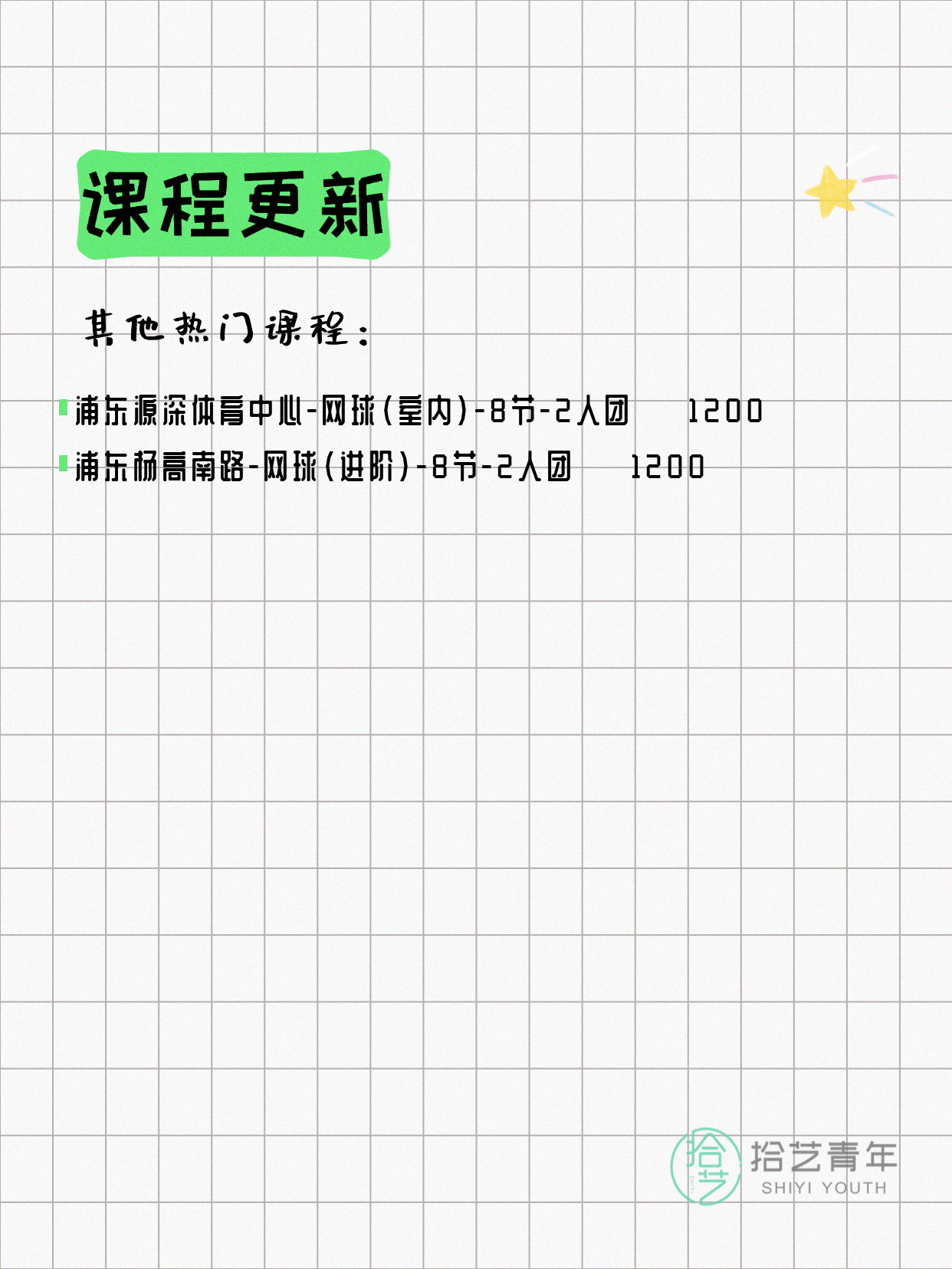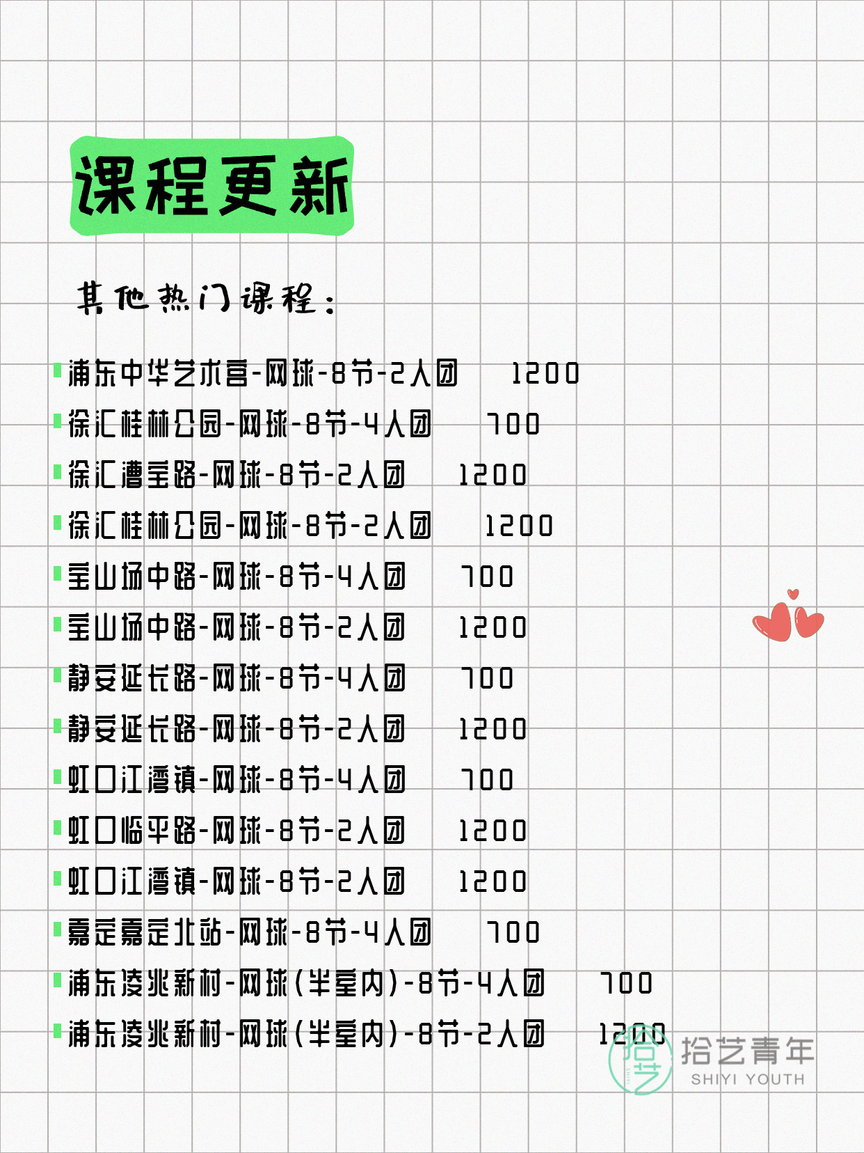🔥 网球-普陀新村路-8节-2人团 💰1200