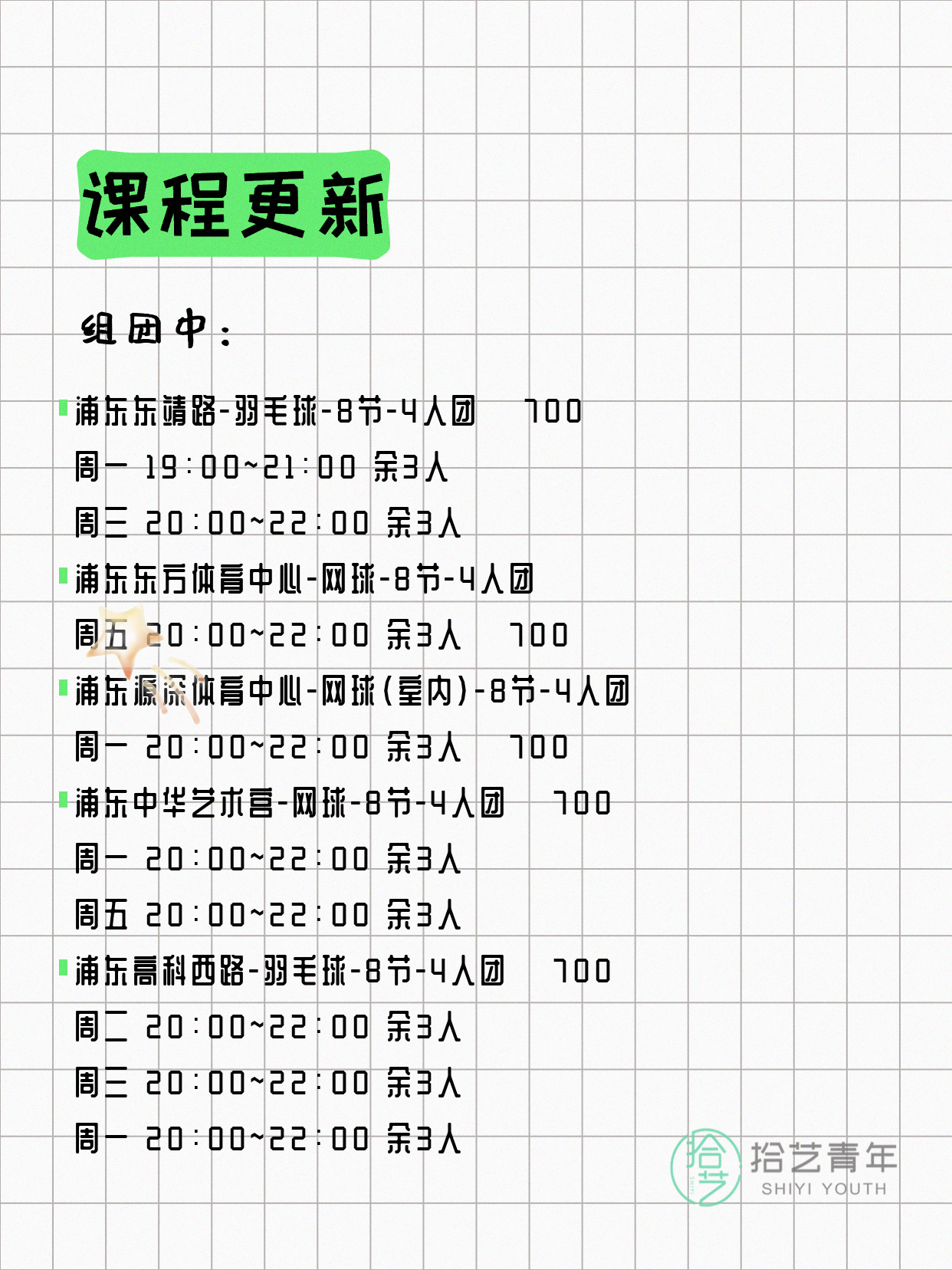 ⭐ 羽毛球-浦东芳甸路-8节-4人团 💰700