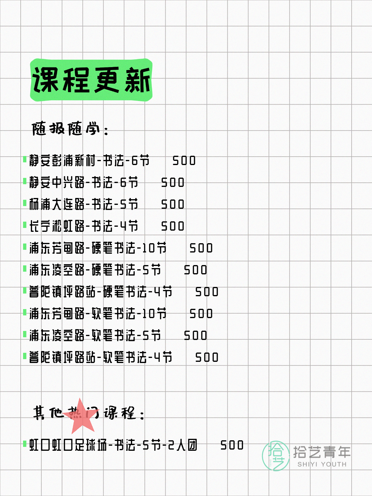 📌 硬笔书法-浦东芳甸路-10节-私教 💰500