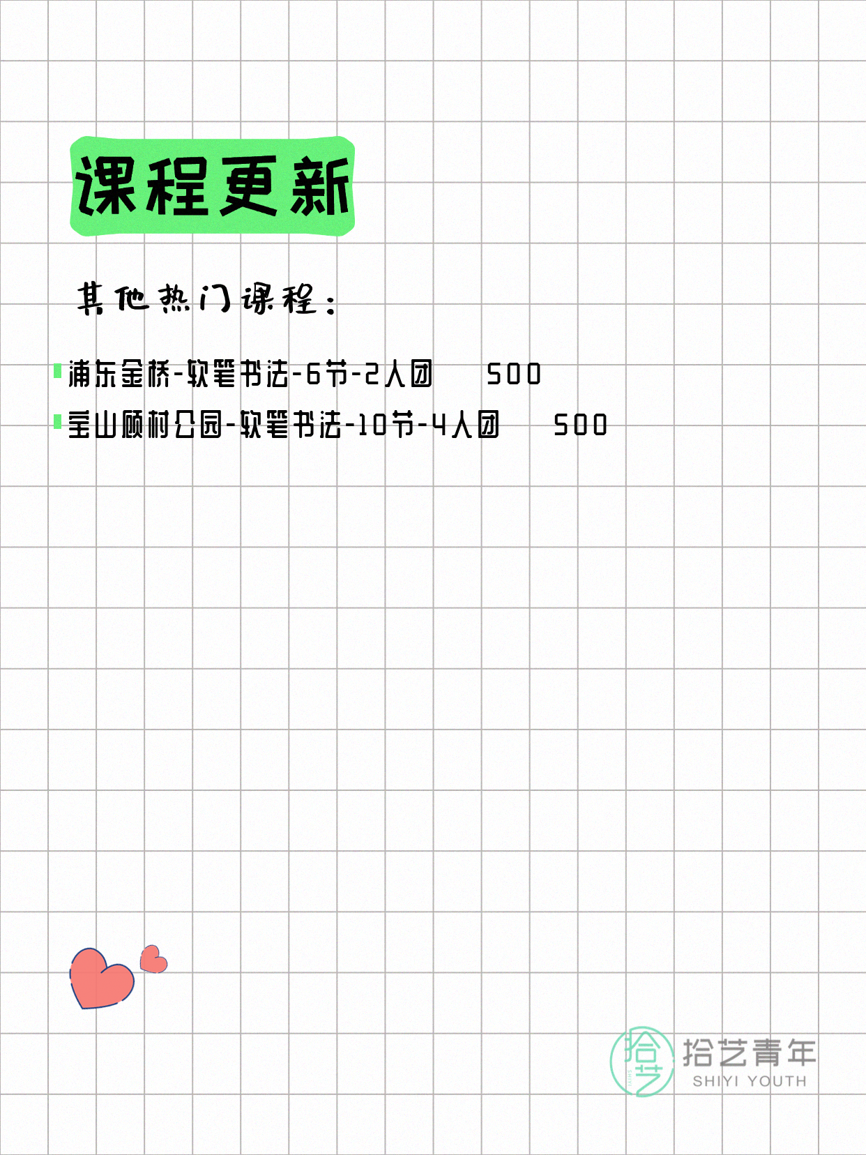 ⭐ 软笔书法-浦东金桥-6节-2人团 💰500