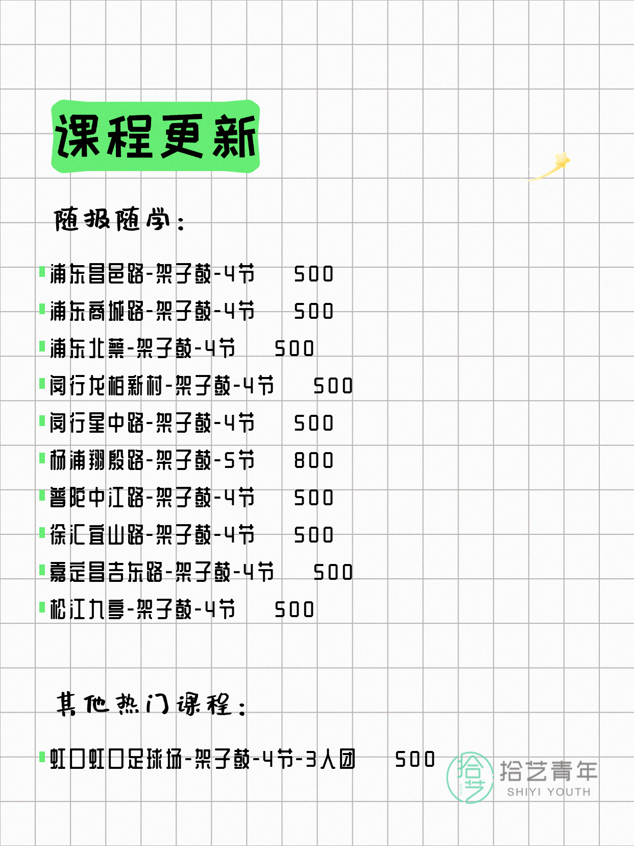 ⭐ 架子鼓-虹口虹口足球场-4节-3人团 💰500
