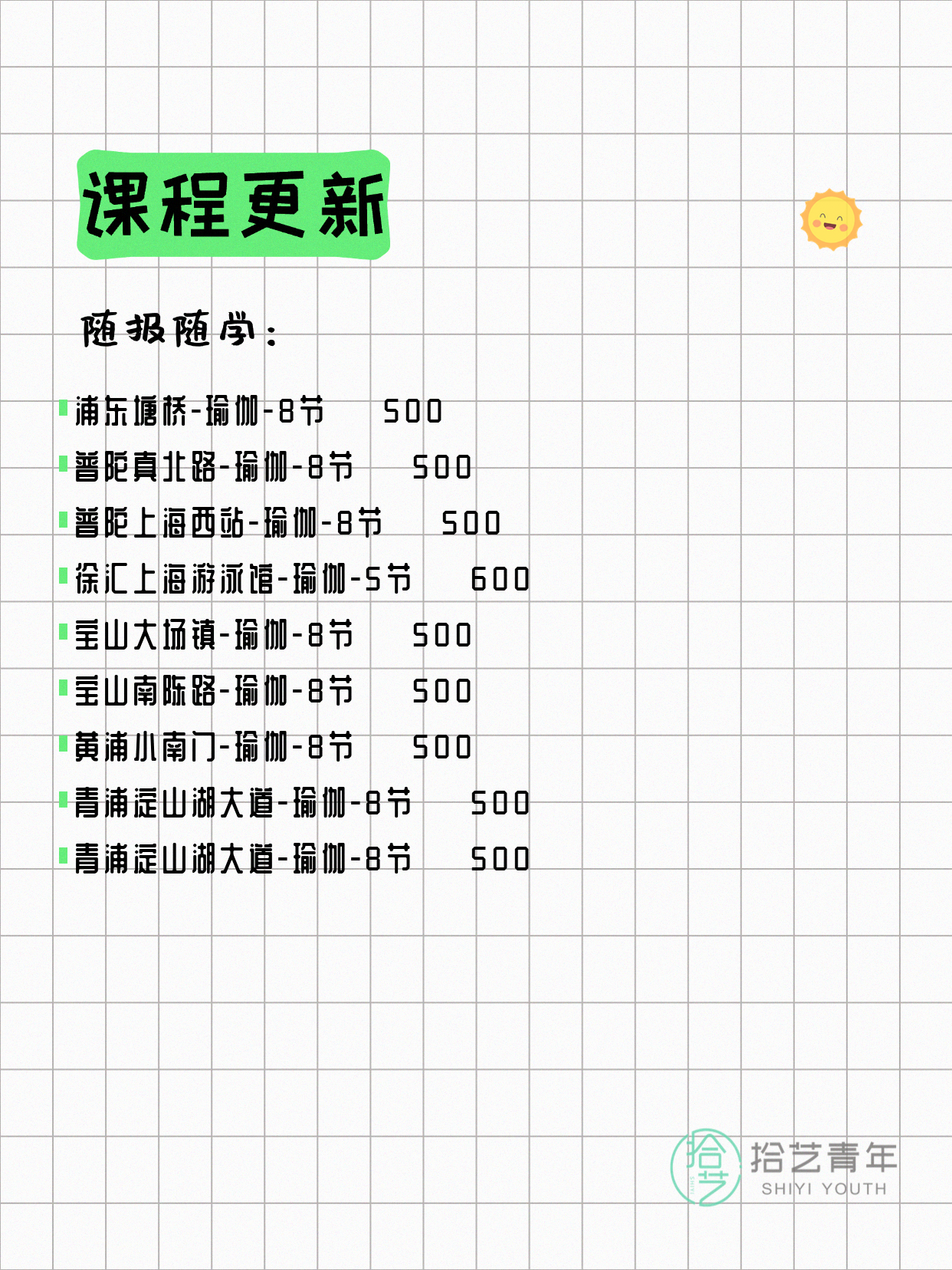 📌 瑜伽-浦东塘桥-8节-一人即可 💰500