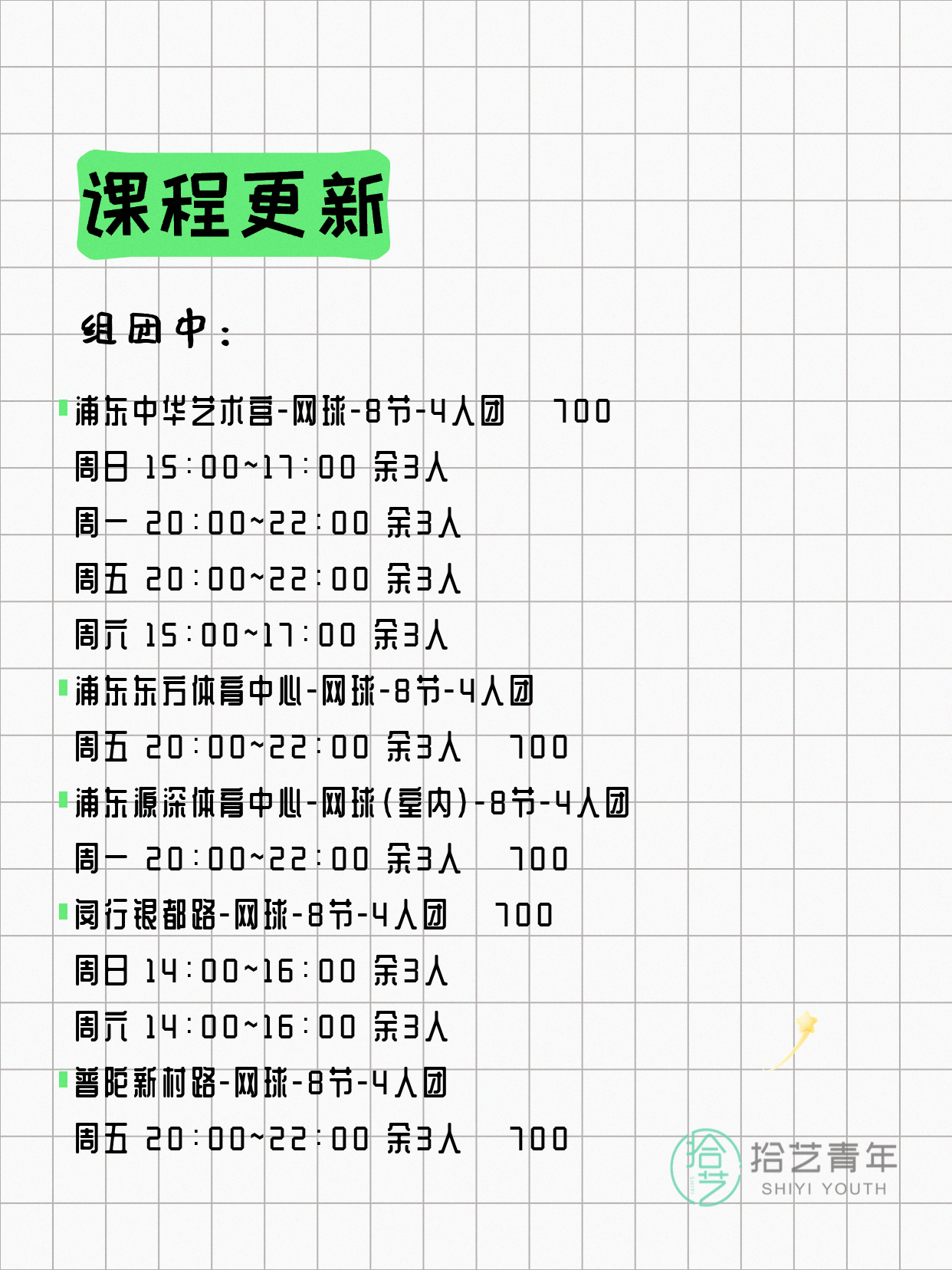 ⭐ 网球-静安延长路-8节-4人团 💰700