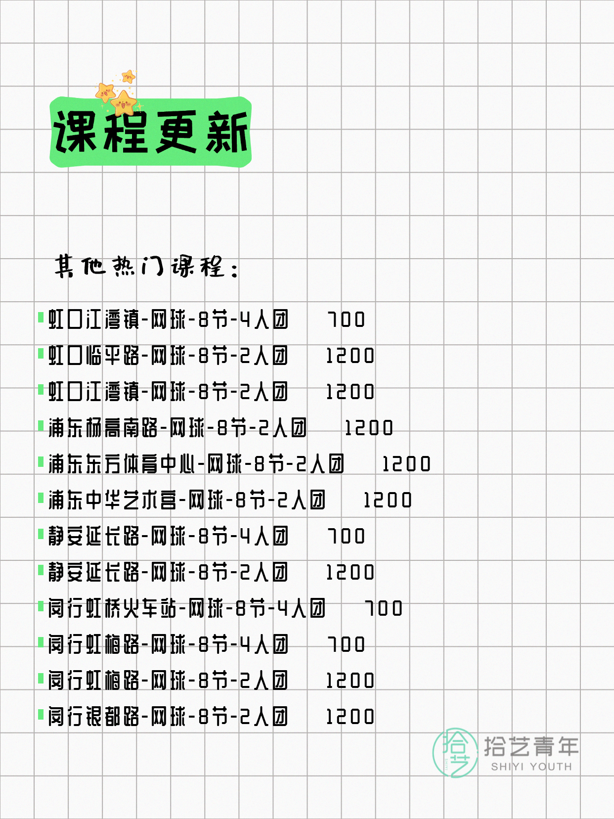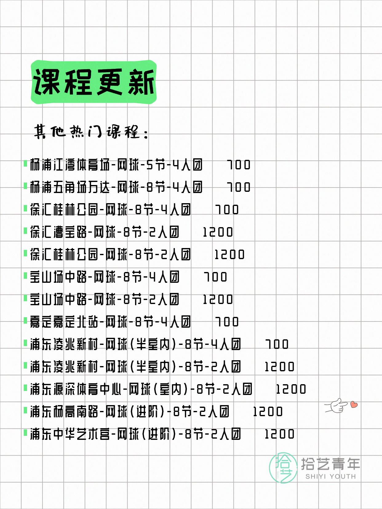 🔥 网球-普陀新村路-8节-2人团 💰1200