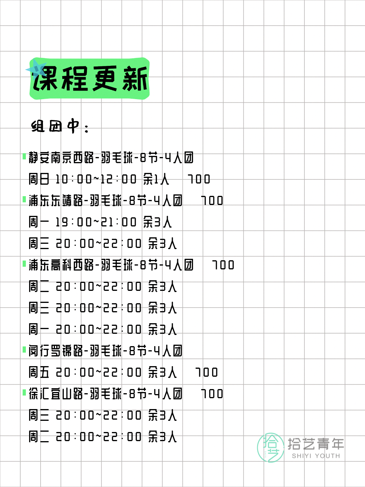 🔥 羽毛球-徐汇宜山路-8节-4人团 💰700