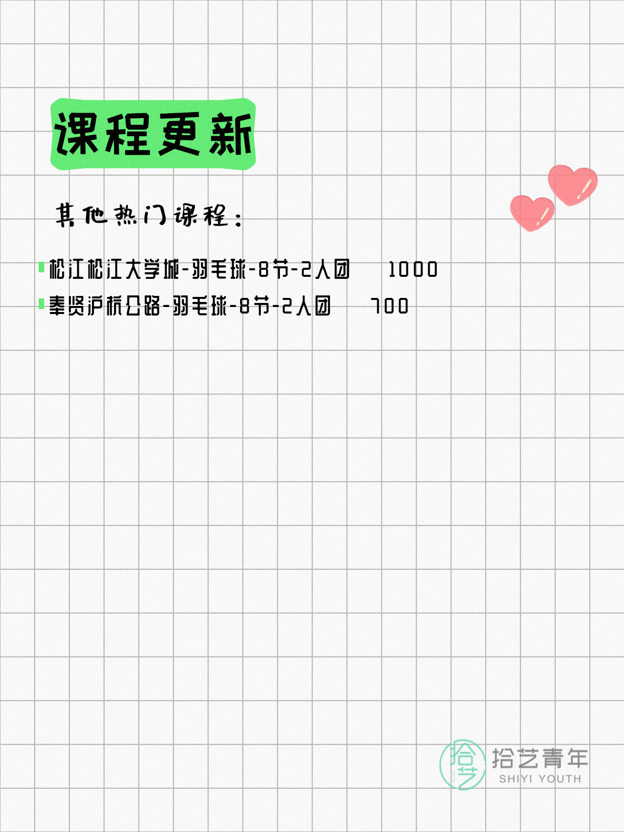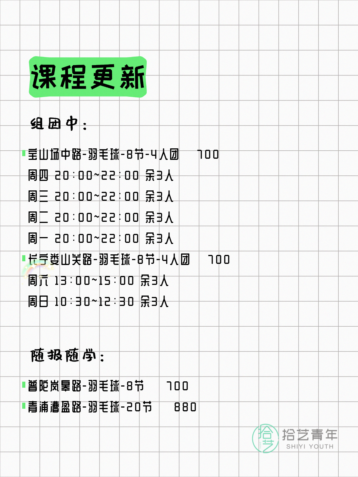 📌 羽毛球-青浦漕盈路-20节-一人即可 💰880