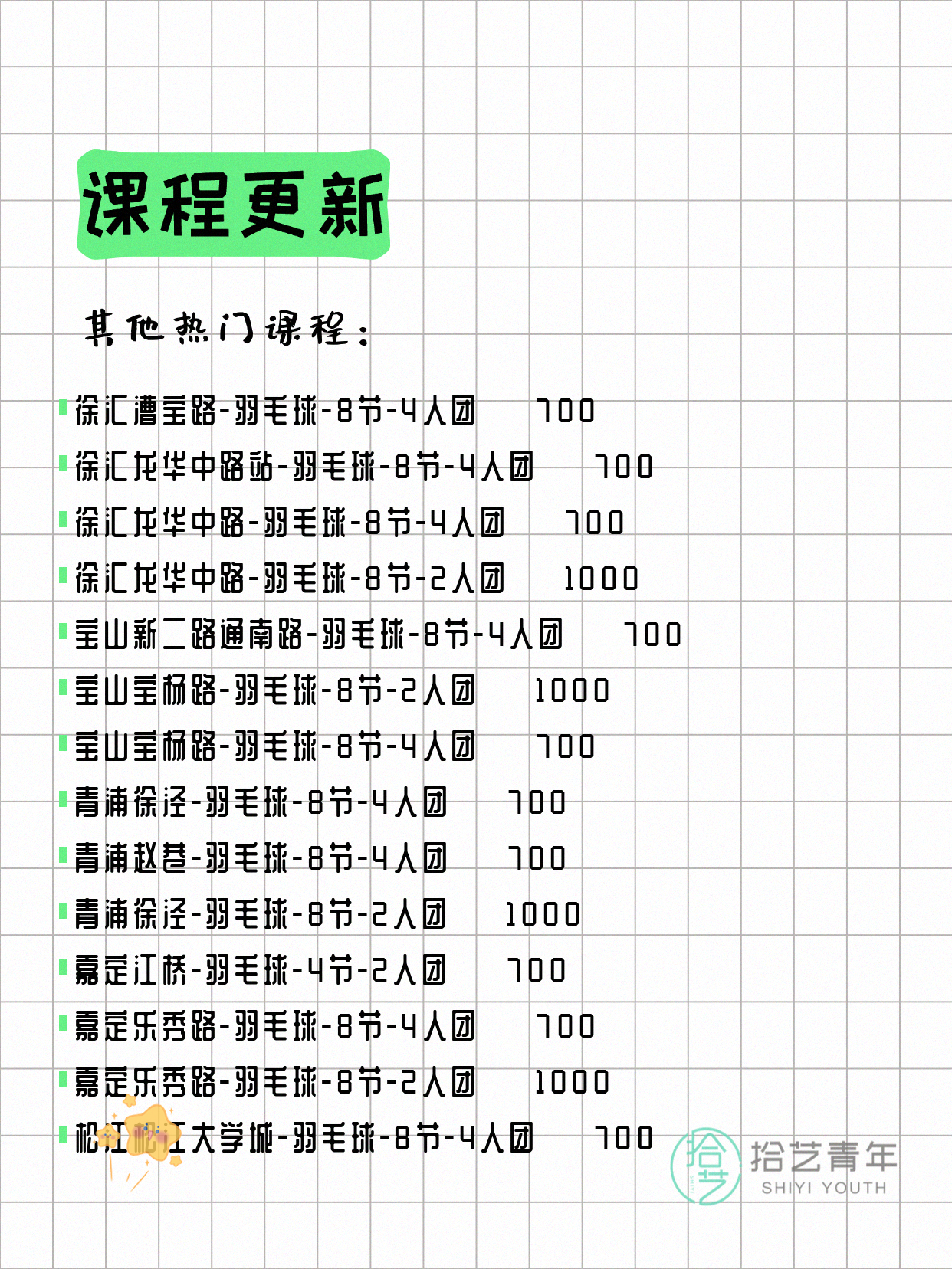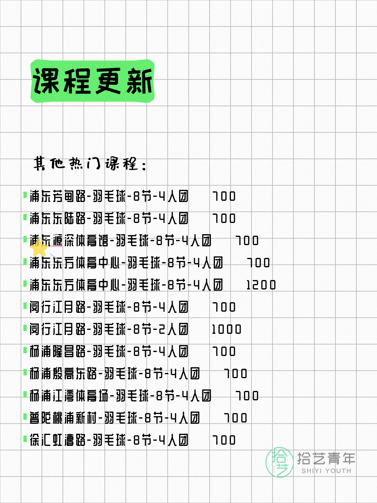 ⭐ 羽毛球-浦东芳甸路-8节-4人团 💰700