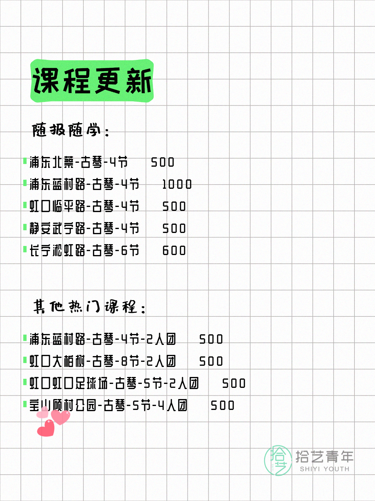 📌 古琴-浦东北蔡-4节-私教 💰500