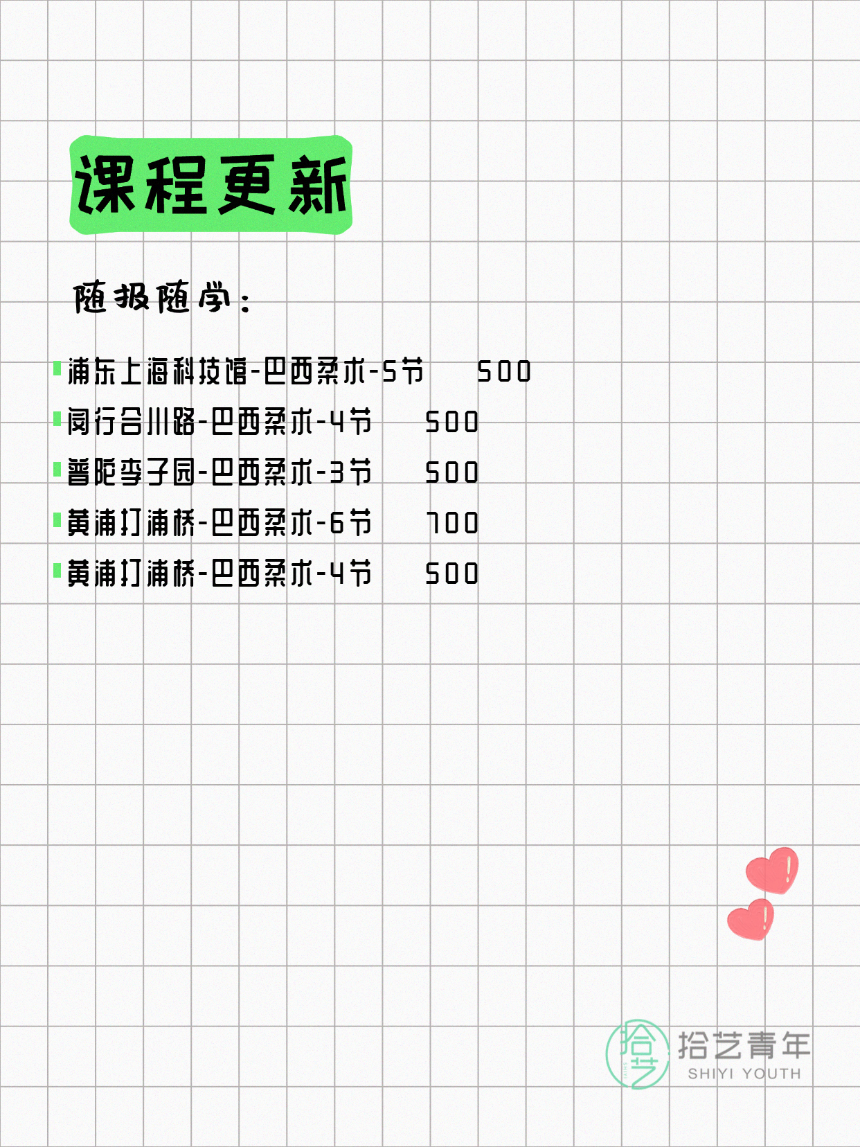 📌 巴西柔术-黄浦打浦桥-6节-一人即可 💰700