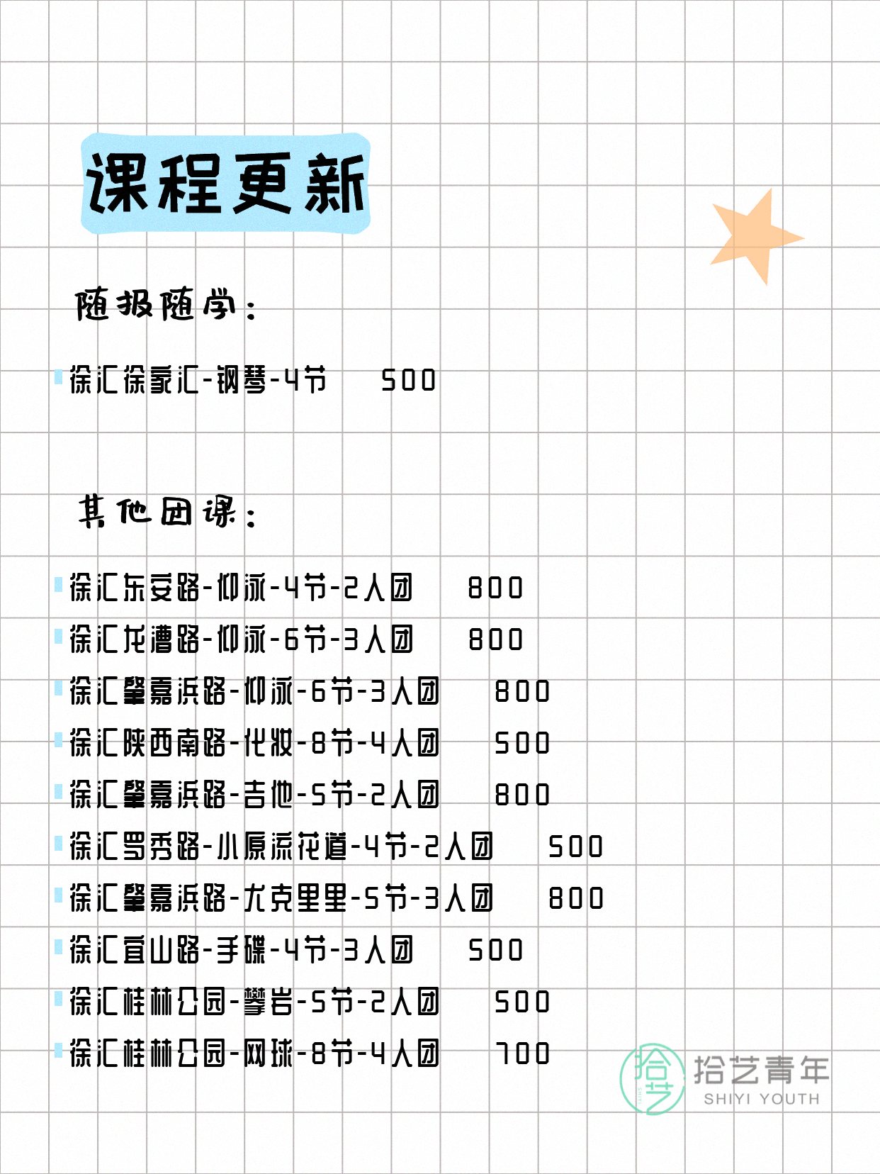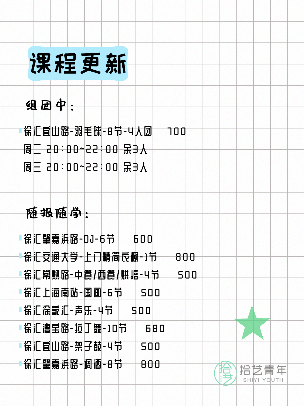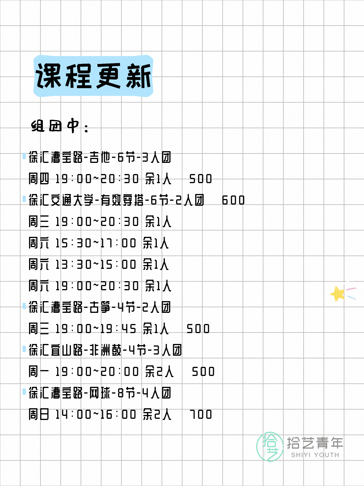 徐汇夜校课表更新啦 吉他和有效穿搭各差1人就能开课 别错过🏃