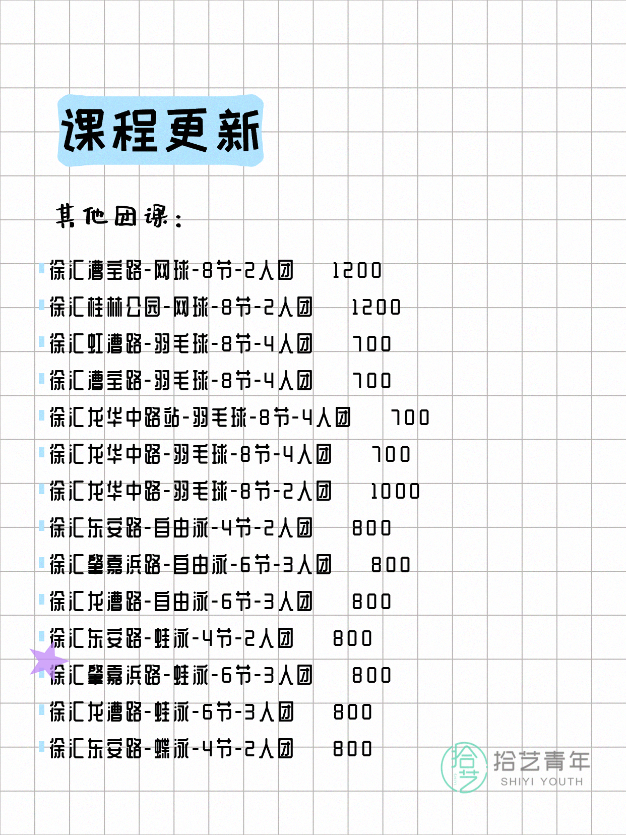 - 徐汇龙漕路-仰泳-6节-3人团 💰 800