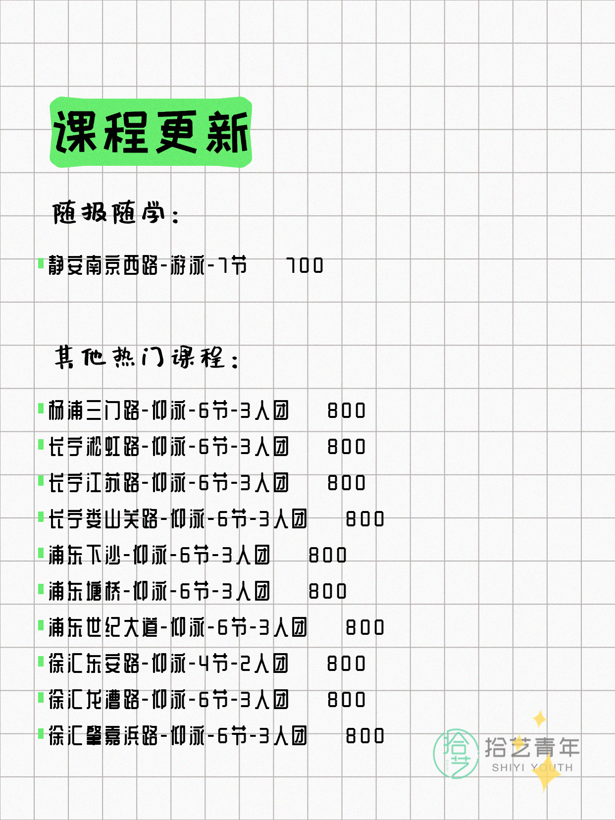 📌 游泳-静安南京西路-7节-一人即可 💰700