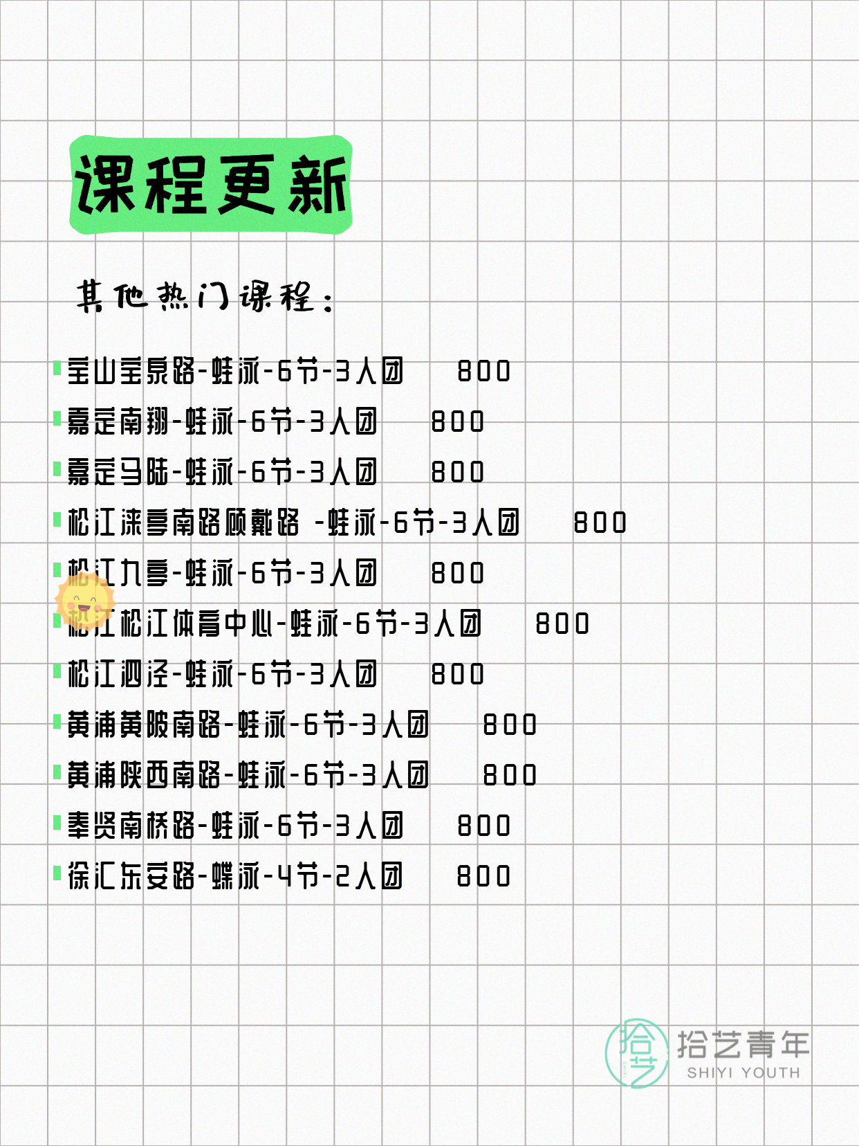 ⭐ 仰泳-长宁淞虹路-6节-3人团 💰800