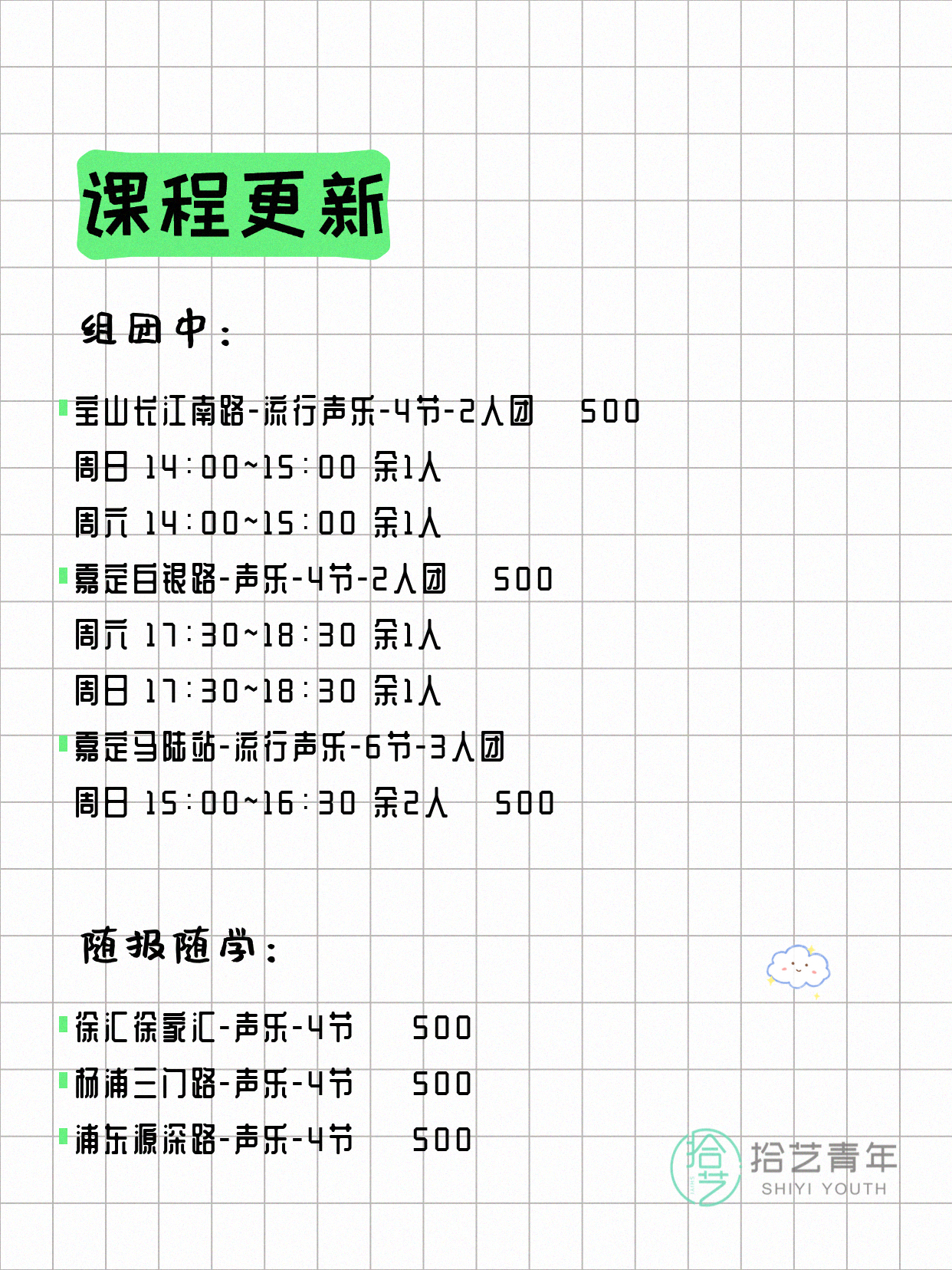 🔥 流行声乐-嘉定马陆站-6节-3人团 💰500