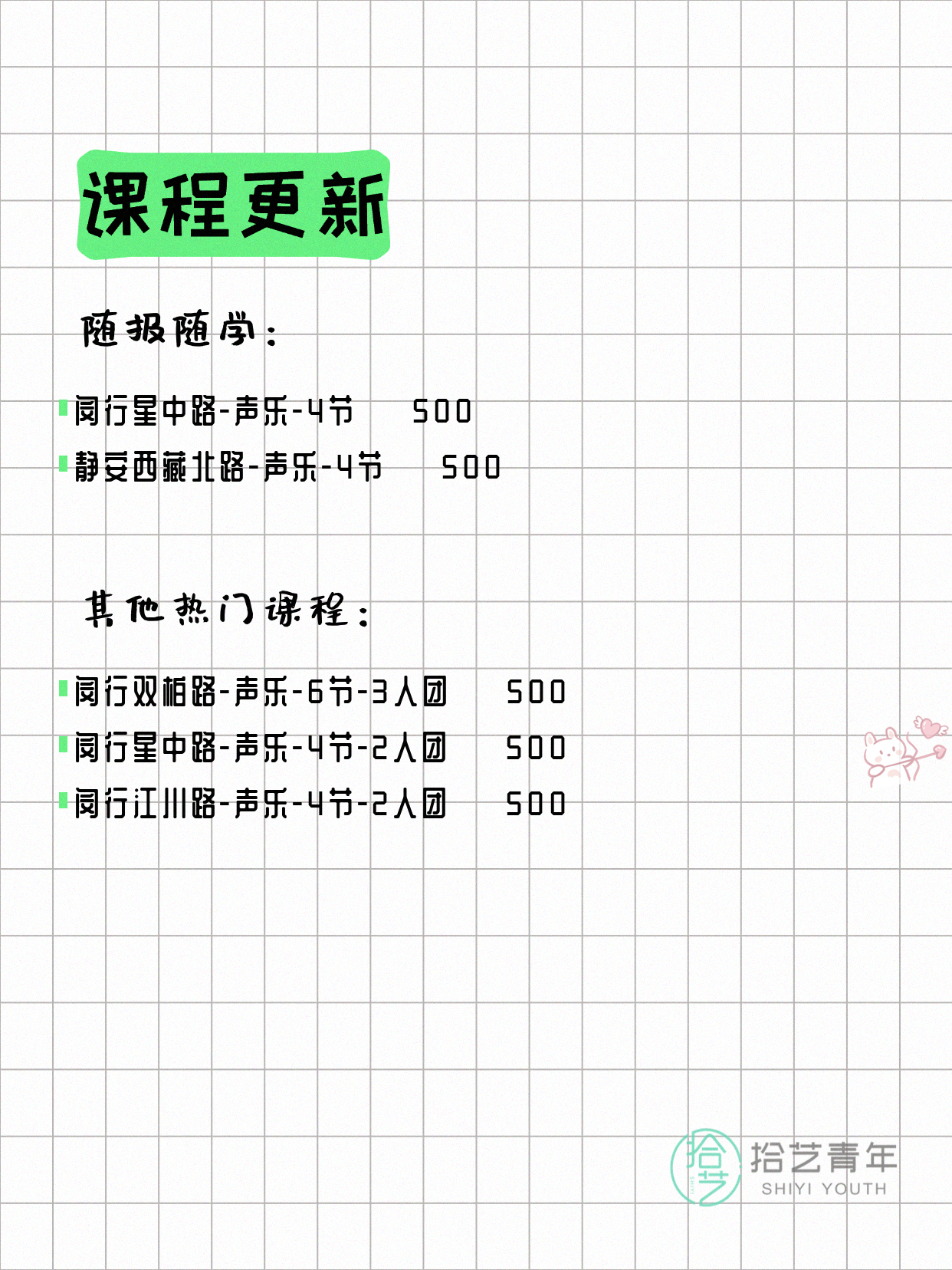 📌 声乐-闵行星中路-4节-私教 💰500
