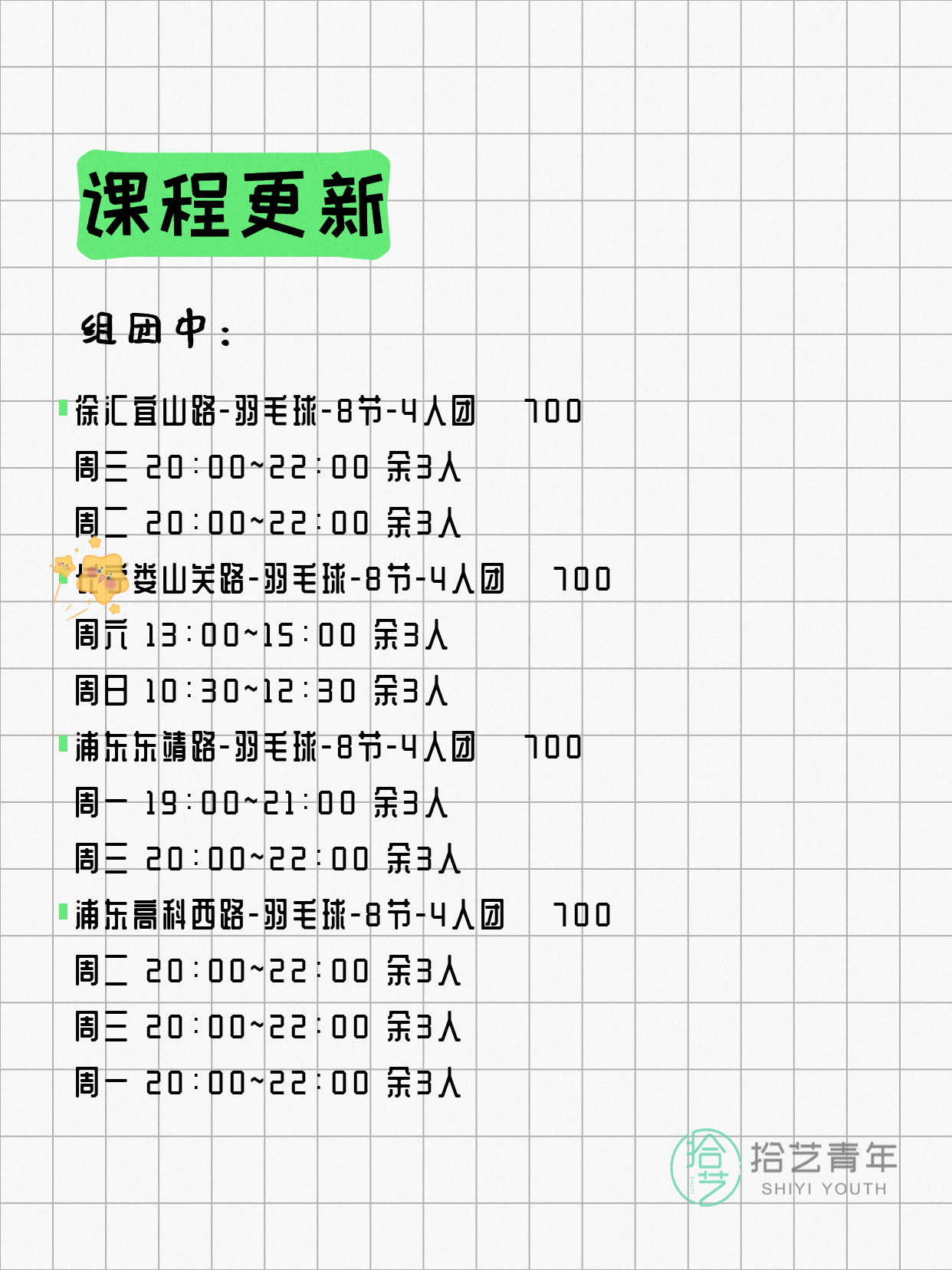 🔥 羽毛球-浦东高科西路-8节-4人团 💰700