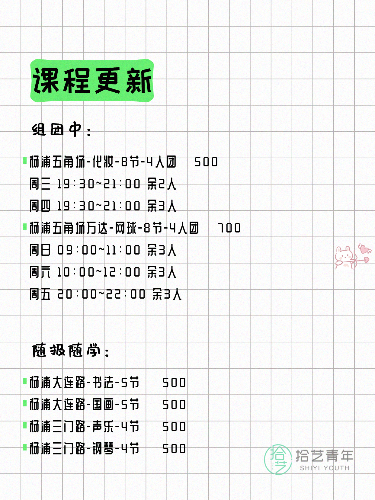 - 杨浦五角场-化妆-8节-4人团 周四 19:30-21:00 余3人 💰 500
