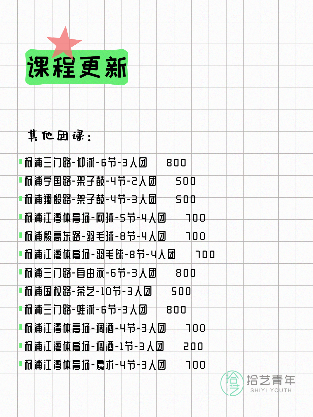 - 杨浦三门路-仰泳-6节-3人团 💰 800
