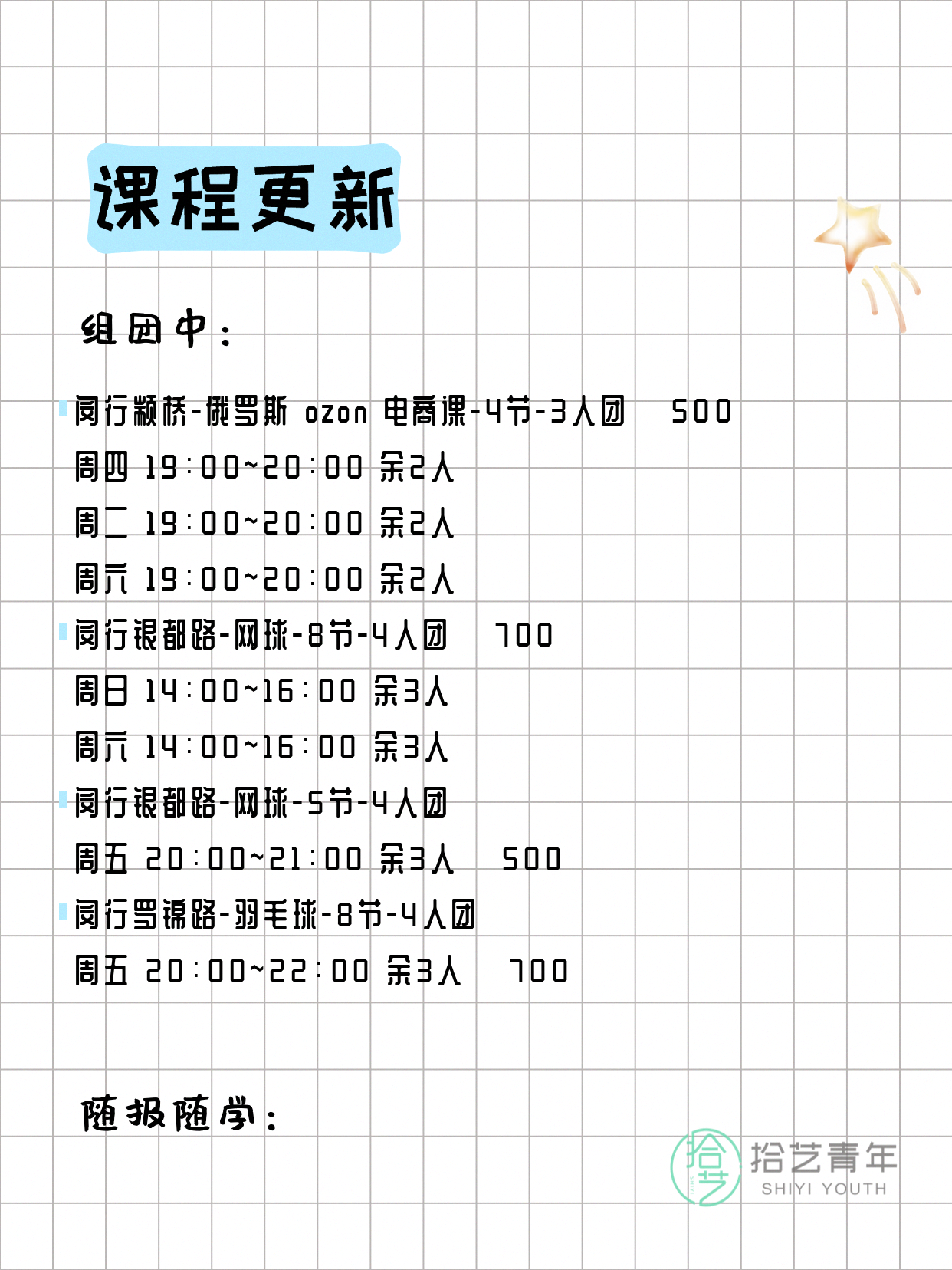 - 闵行颛桥-俄罗斯 ozon 电商课-4节-3人团 周四 19:00-20:00 余2人 💰 500