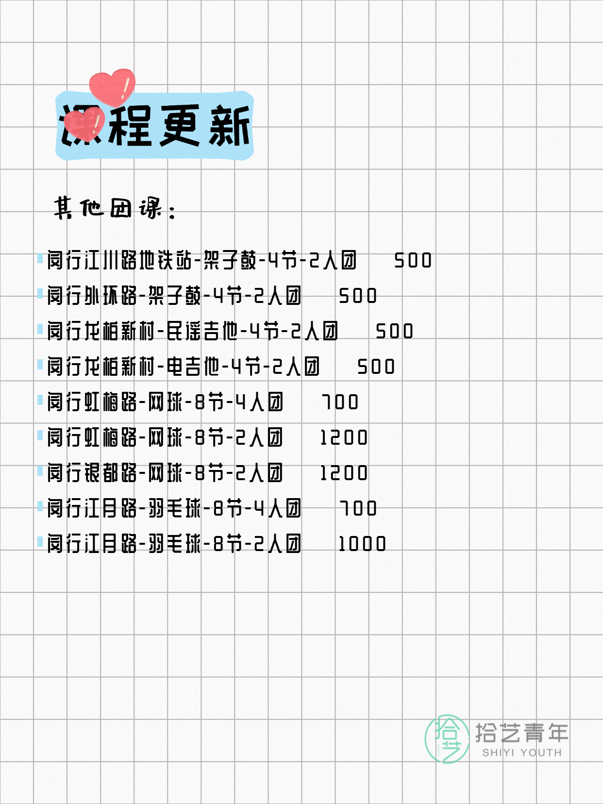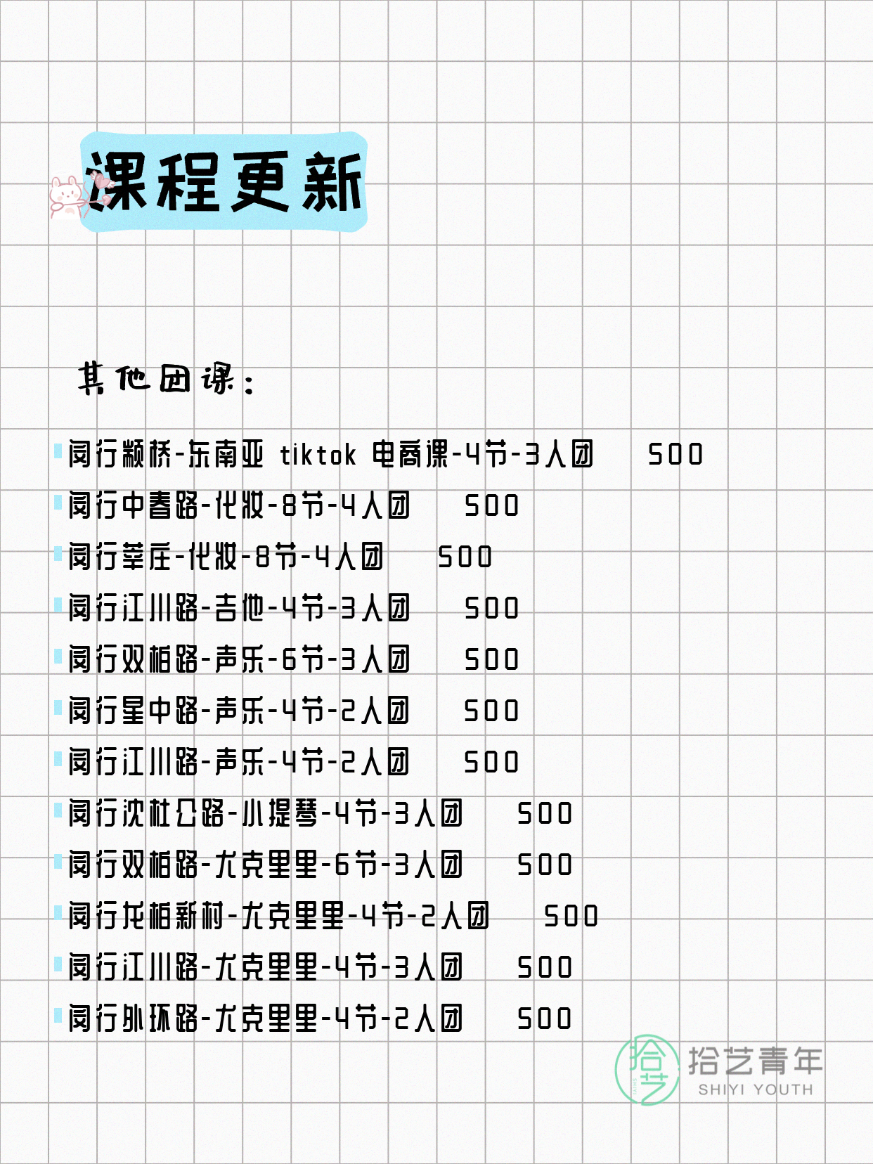 - 闵行双柏路-声乐-6节-3人团 💰 500