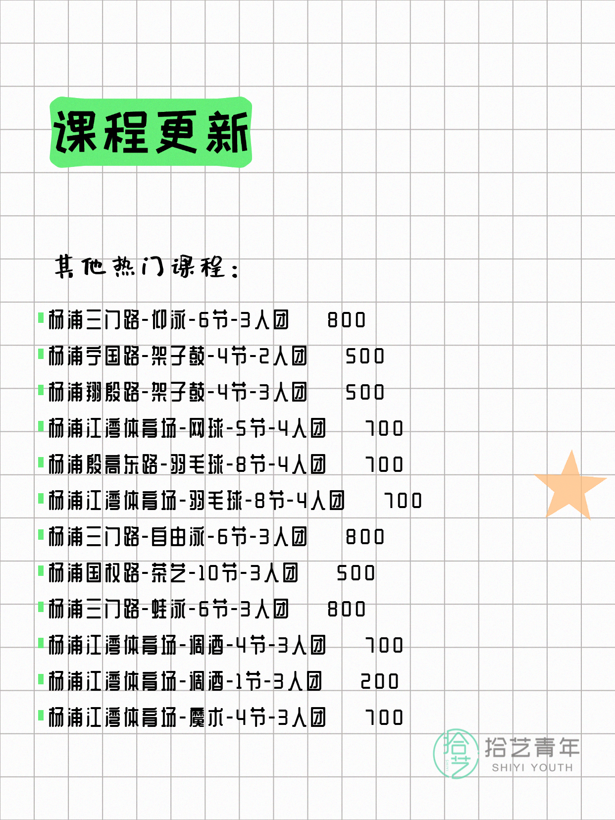 ⭐ 仰泳-杨浦三门路-6节-3人团 💰800