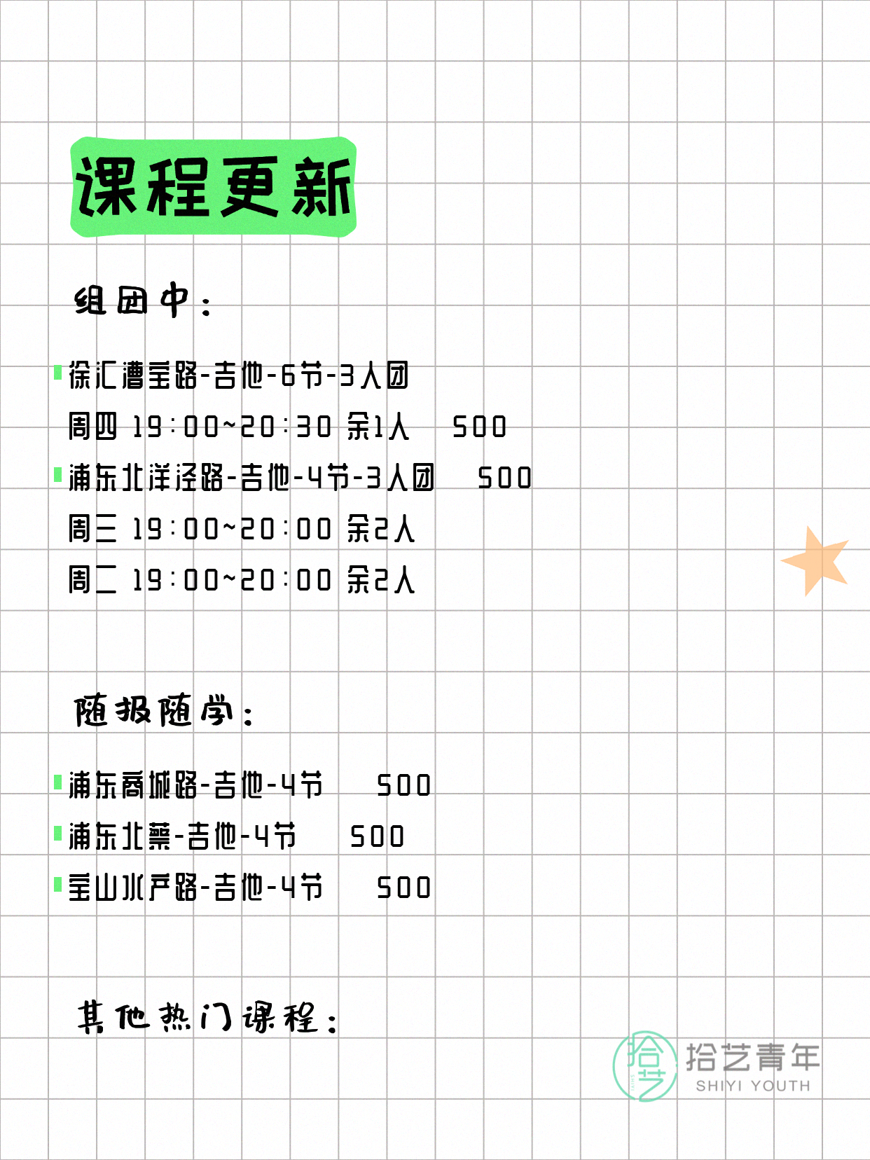 ⭐ 吉他-宝山水产路-6节-2人团 💰500